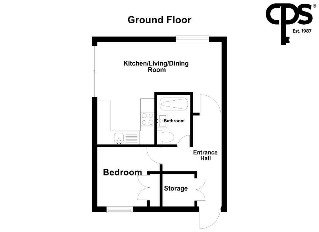Living/Kitchen/Dining Room- 5.77m x 5.18m (widest points)