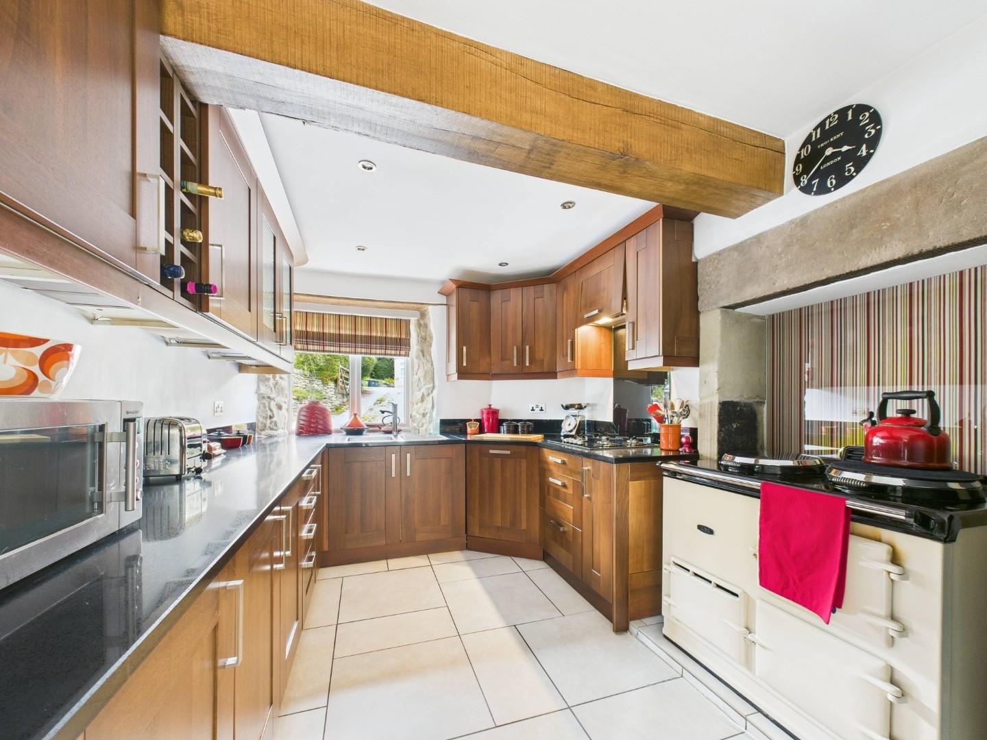 Kitchen - 2.67 x 4.69 (8'9" x 15'4") - This well-equipped kitchen features a range of wall, base, and drawer units, offering plenty of storage space. There's an inset sink with a mixer tap, an integrated dishwasher, and space for a full-size fridge freezer. The standout feature is the impressive AGA cooker, adding both style and warmth to the room. Exposed wooden ceiling beams give the space character, while a front-facing window lets in lots of natural light, making the kitchen feel bright and welcoming.