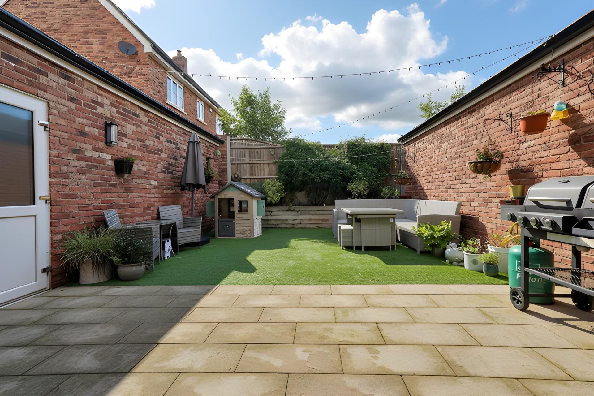- Low maintenance rear garden