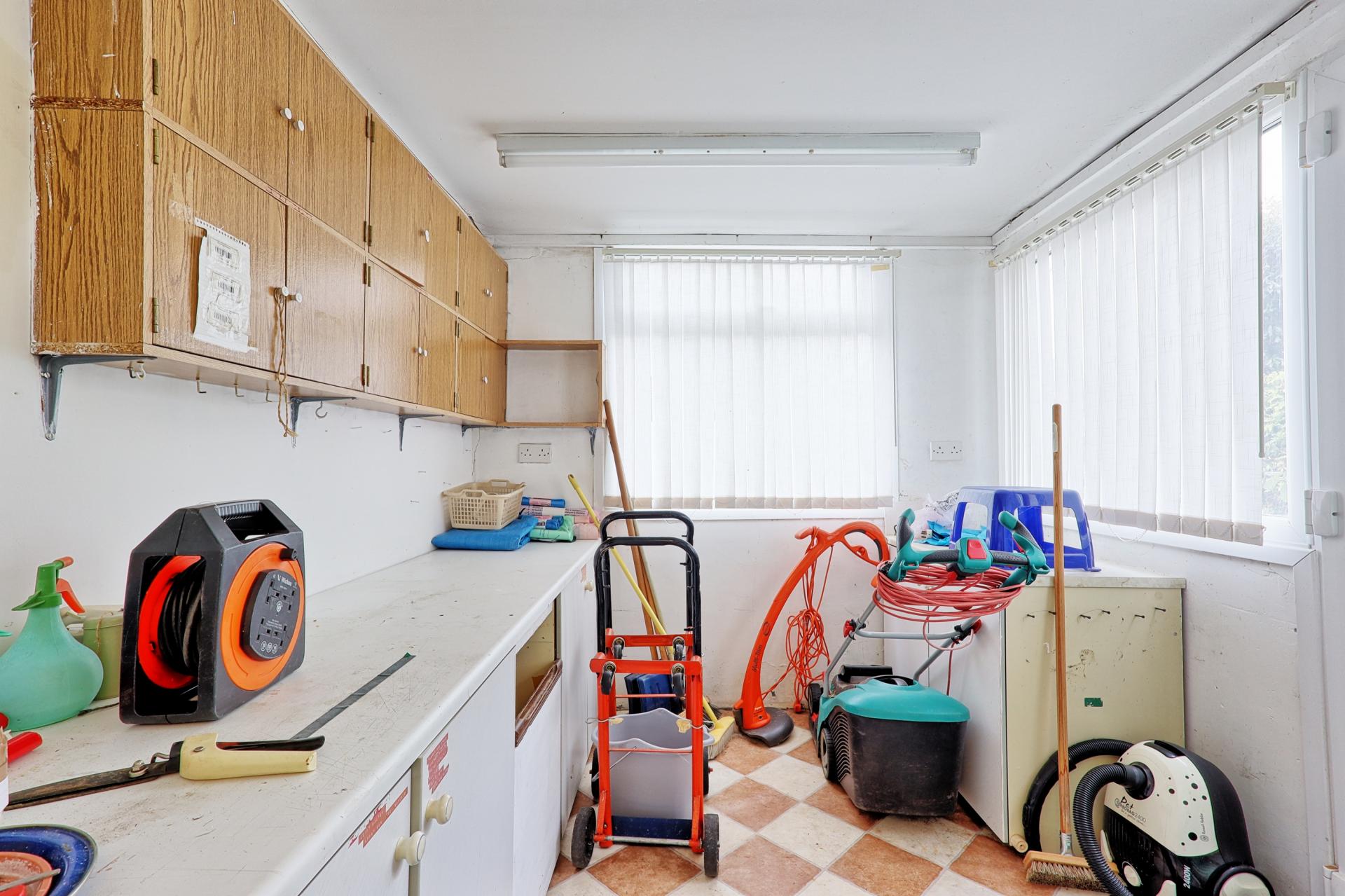 The property features a wrap-around kitchen, dining, and living area that creates a bright and sociable space, ideal for both relaxing and entertaining. There are three generously sized bedrooms providing ample accommodation for the whole family, along with the added benefit of a useful utility space and a versatile workshop.
