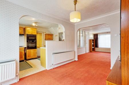 LOUNGE/DINING ROOM 28' 7" x 10' 5" (8.71m x 3.18m) Double glazed window to front with Double glazed sliding patio doors overlooking rear garden. Two radiators. Textured ceiling with coving. Ornamental fireplace. Wall lights. Carpet. Door giving access through to: