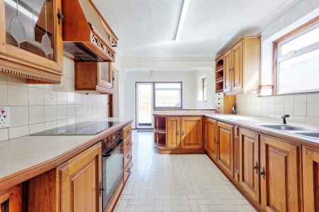 KITCHEN AREA Fitted in a range of wood units offering cupboards and drawers to ground & eye level with contrasting worktops over. Inset stainless steel one & half bowl single drainer sink unit with mixer taps. Tiled splashback. Coved and artexed ceiling. Double glazed window to side. Oven and grill with four ring hob and extractor over.