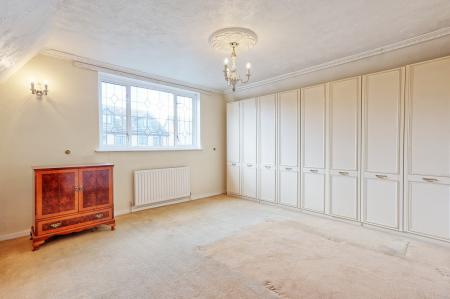 BEDROOM ONE 13' x 12' 6" (3.96m x 3.81m) Carpet. Radiator. Double glazed led light window to front. Coved and artexed ceiling. Wardrobes. Access to eaves storage.