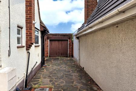 PARKING Via detached brick built garage with up and over door with personal door and window to side. Approached via paved driveway to side and matching frontage providing off-street parking for numerous vehicles. Boarded by retaining wall and hedges.