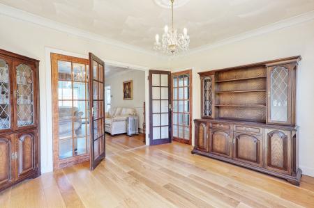 DINING ROOM 11' 9" x 10' 9" (3.58m x 3.28m) Wood strip flooring. Radiator. Double glazed led light window to front. Coved and artexed ceiling. Glazed folding doors to lounge.