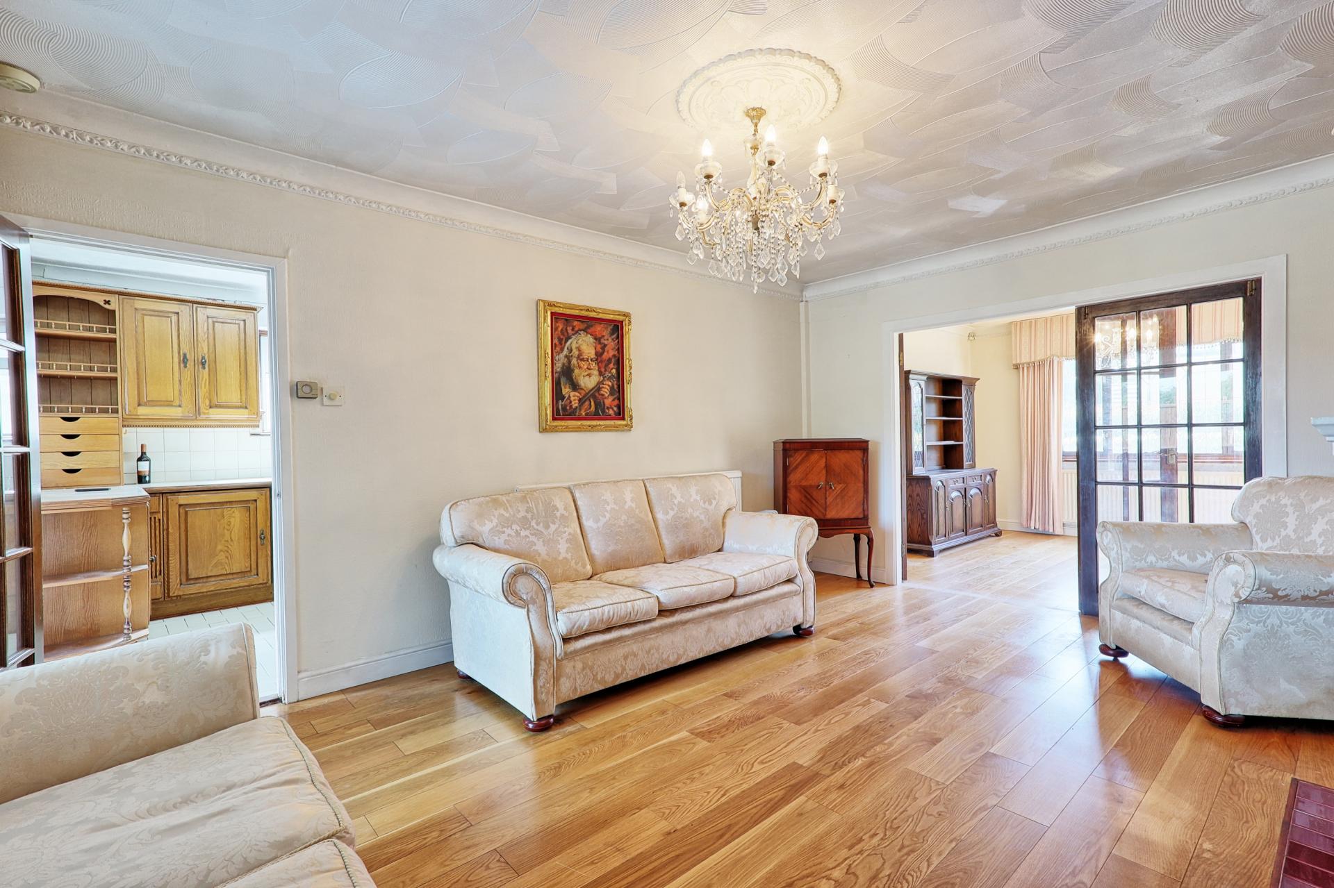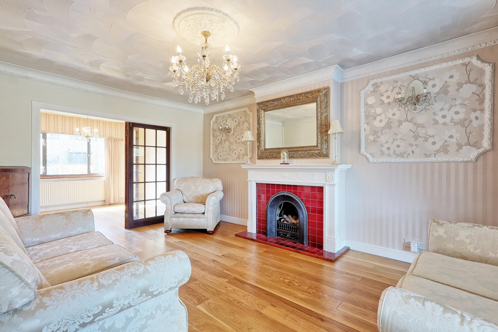 LOUNGE 16' 1" x 11' 9" (4.9m x 3.58m) Wood strip flooring. Radiator. Coved and artexed to ceiling. Central chimney breast with surround and tiling. Double glazed patio doors to breakfast room. Further door to kitchen.