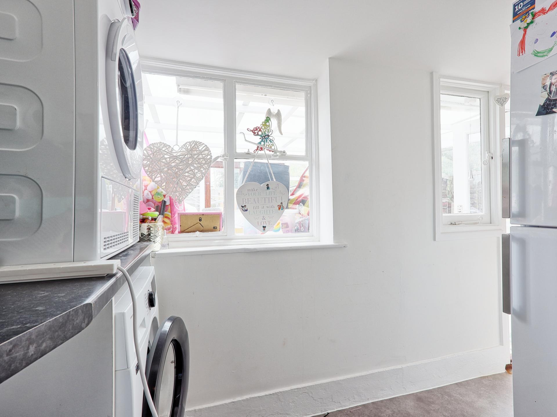 UTILITY ROOM 12' 7" x 4' (3.84m x 1.22m) Space and plumbing for washing machine and tumble dryer. Tiled splashback. Space for fridge and freezer. Window and door to rear.