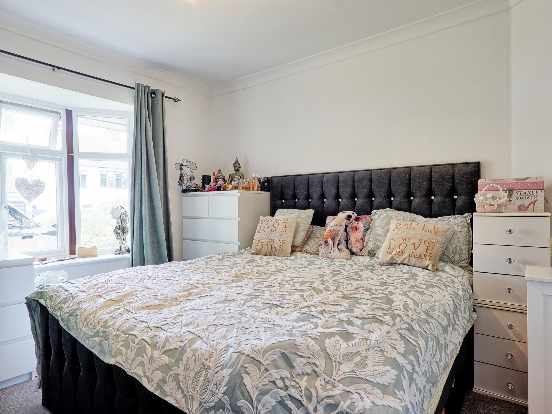 BEDROOM ONE 12' 6" x 11' 2" (3.81m x 3.4m) Carpet. Radiator. Double glazed bay window to front. Flat plastered ceiling with coving.