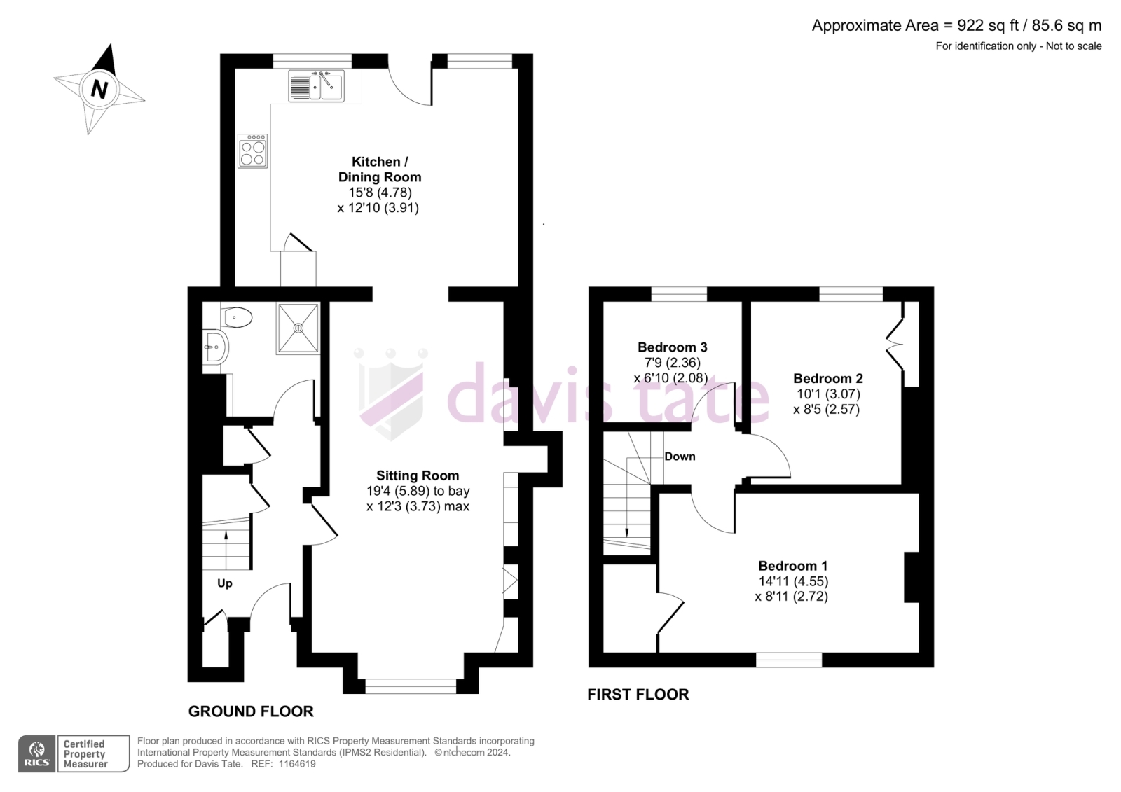 Entrance hall, sitting room with feature fireplace opening into a re-fitted kitchen/diner with doors leading into the garden. Stylish ground floor shower room. Upstairs there are three separately approached bedrooms.