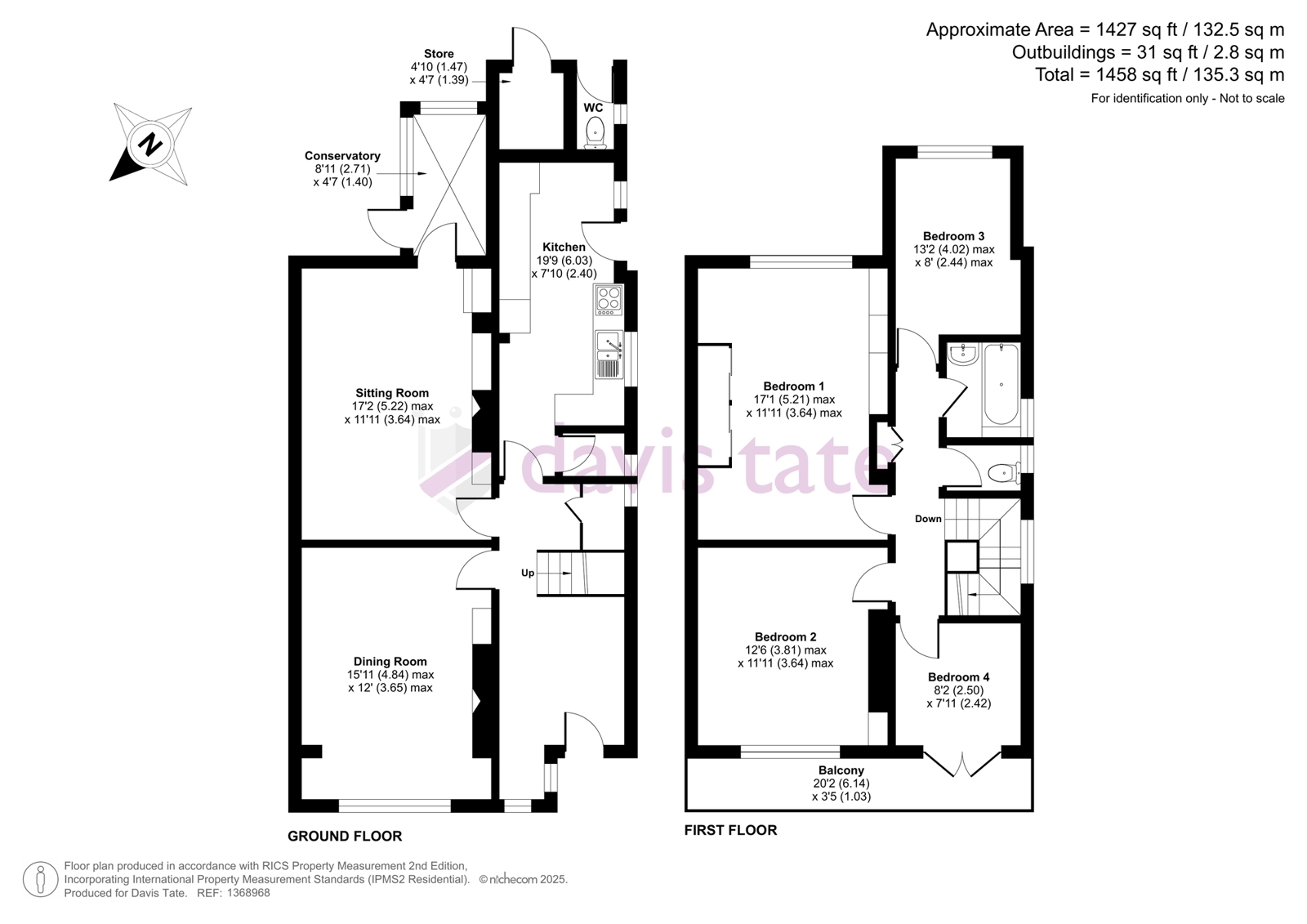Elegant entrance hall, two reception rooms with feature fireplaces, and a galley kitchen/breakfast room with pantry. To the rear of the sitting room is access to the original 1905 conservatory. Upstairs there are four bedrooms, a west facing balcony, bathroom and a separate WC.