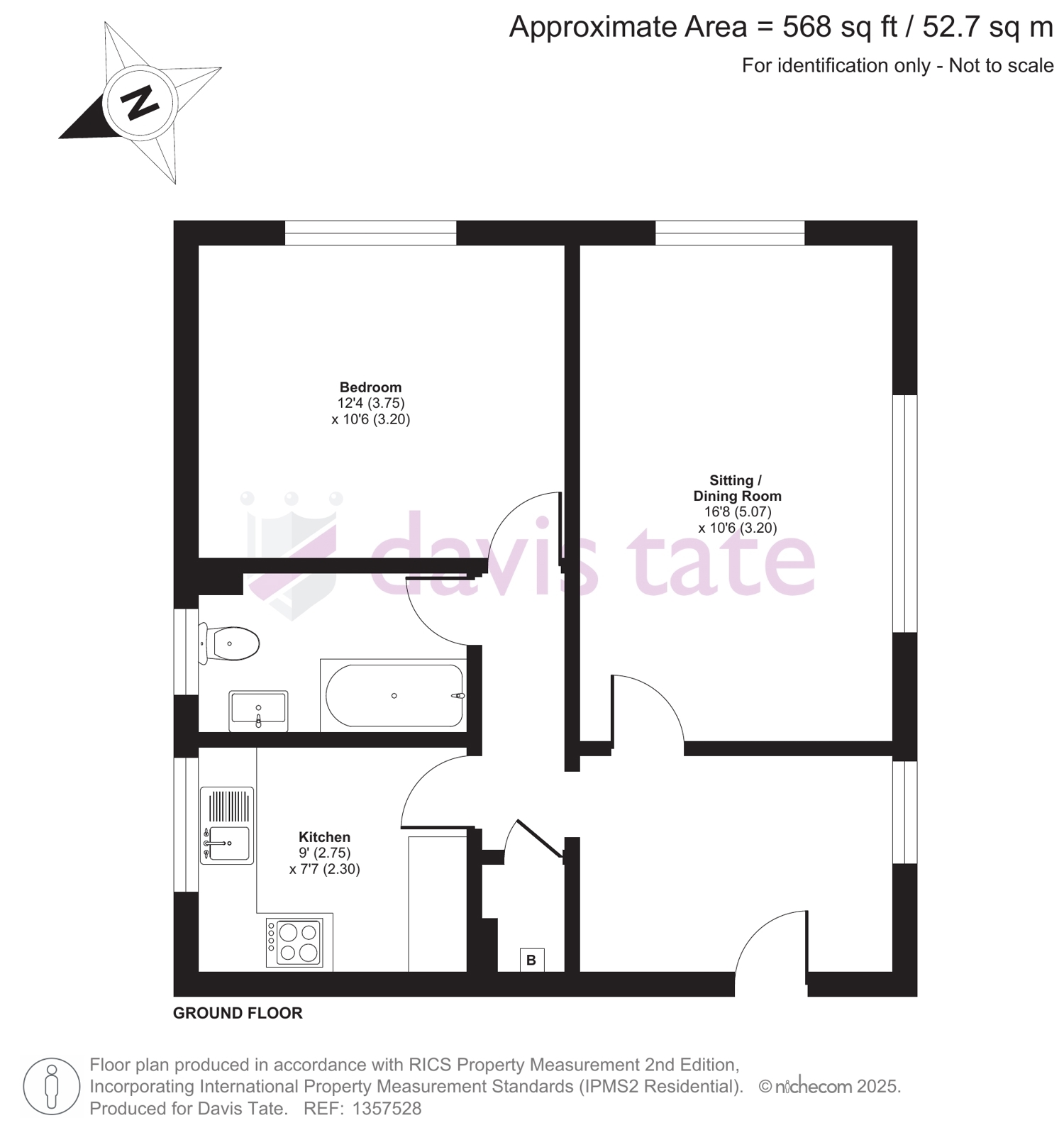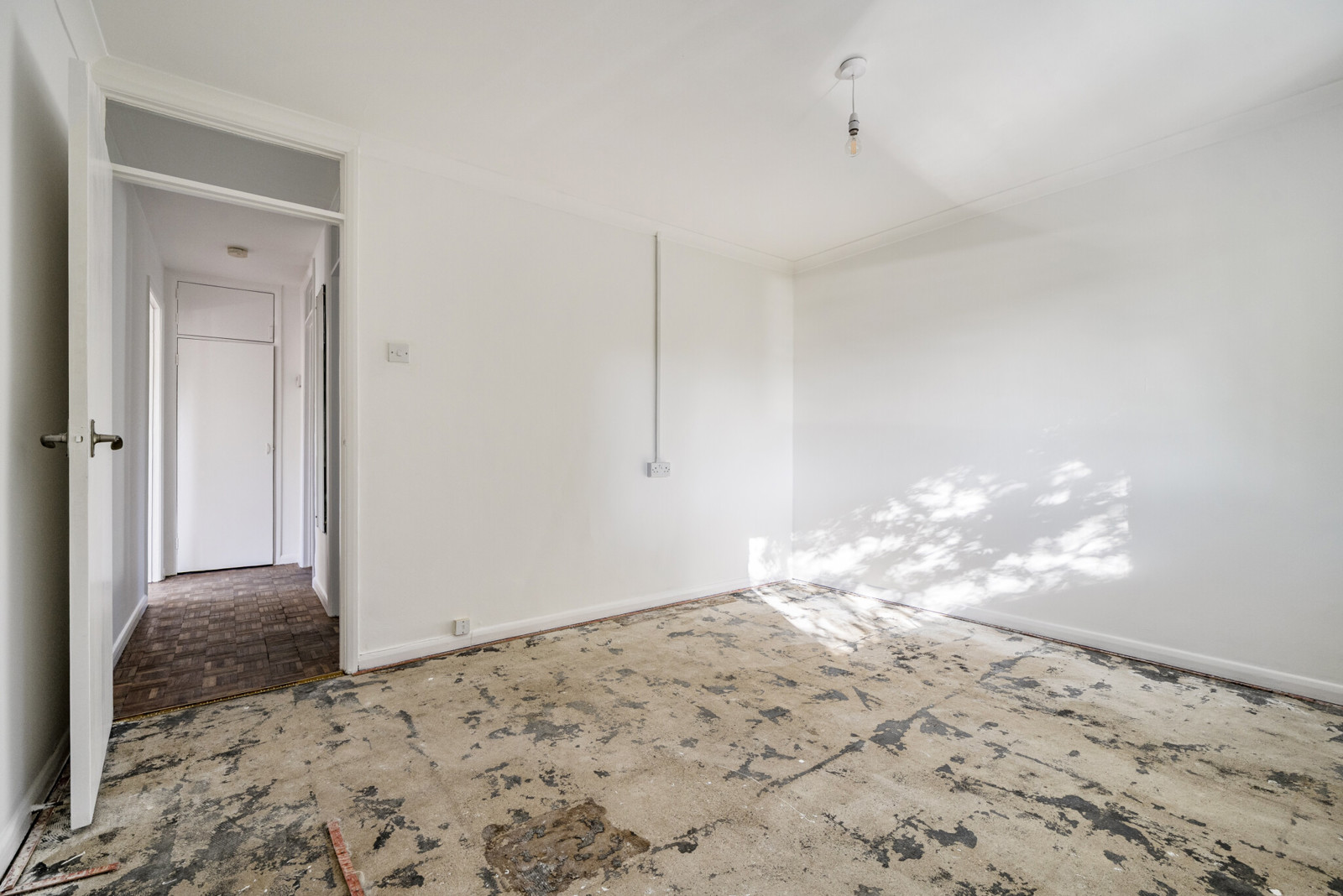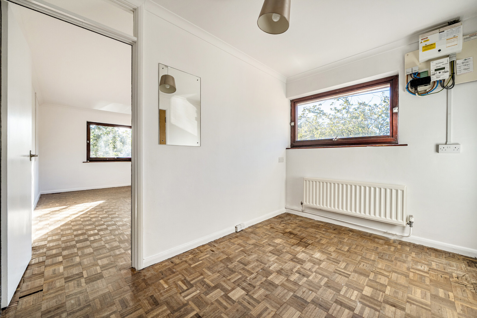 The apartment features a generous living room with attractive parquet flooring, a fitted kitchen, a double bedroom, a family bathroom, and a welcoming entrance hall with a versatile study area. Additional benefits include well-maintained communal gardens and residents parking. EPC Rating: C
