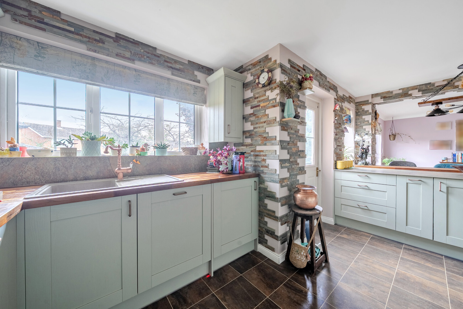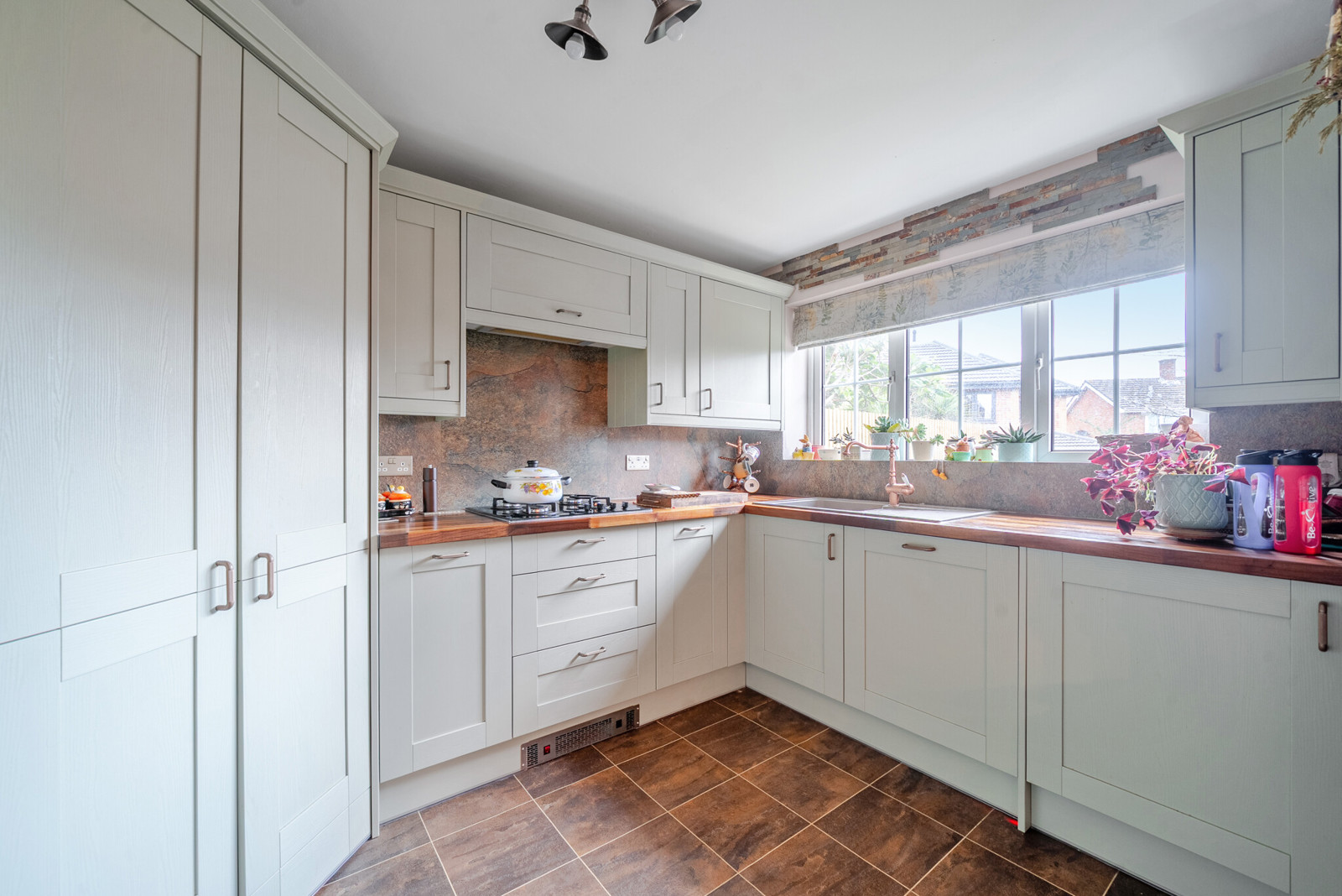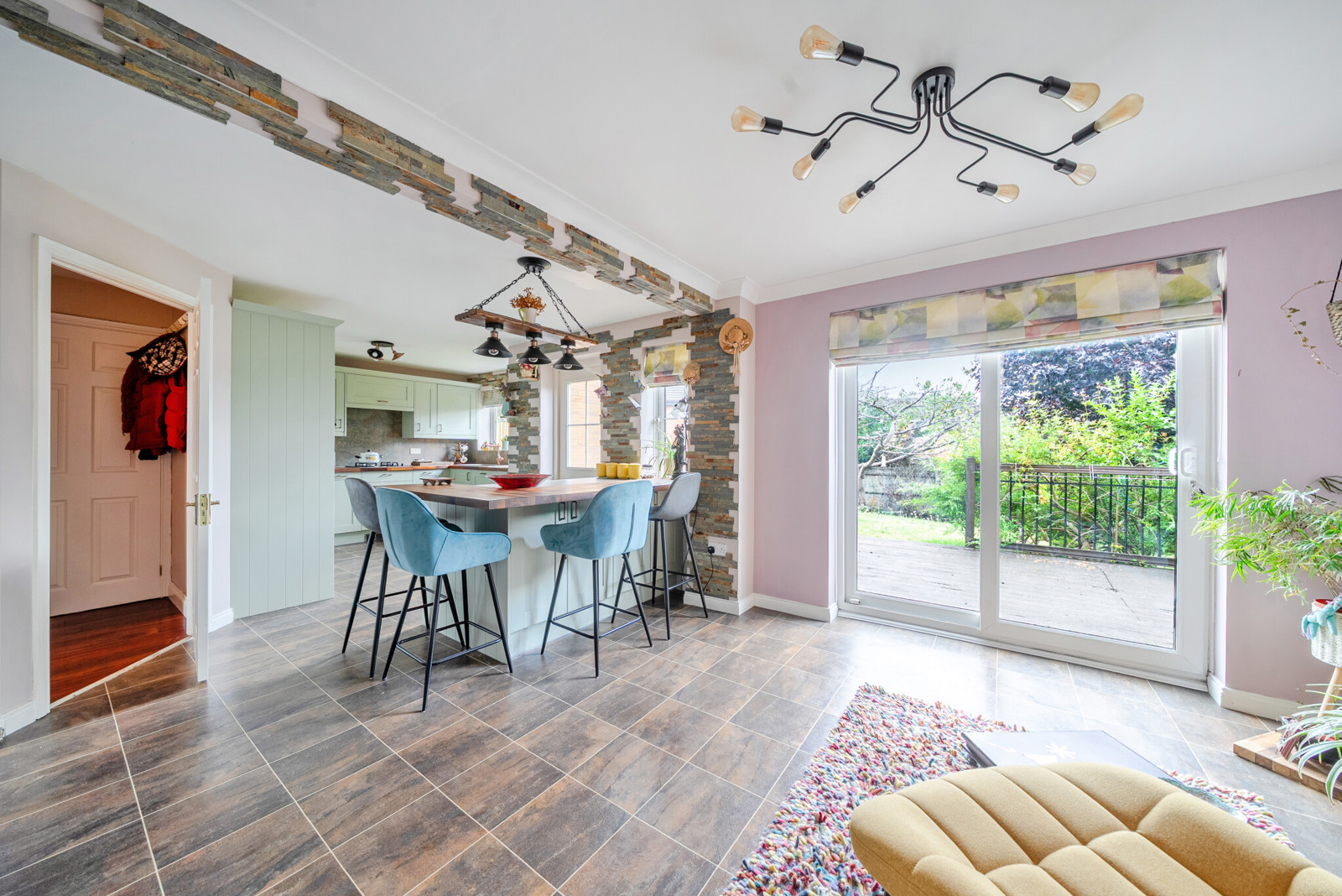 The property has been thoughtfully improved by the current owner and features a spacious living room, a modern refitted open-plan kitchen/dining area with Karndean flooring, fitted appliances, a plinth heater, and a walk-in larder. There is also a convenient downstairs W.C. Upstairs, you'll find four generously sized bedrooms, including a master bedroom with Karndean flooring, a contemporary refitted family bathroom, and a stylish en-suite to the primary bedroom.