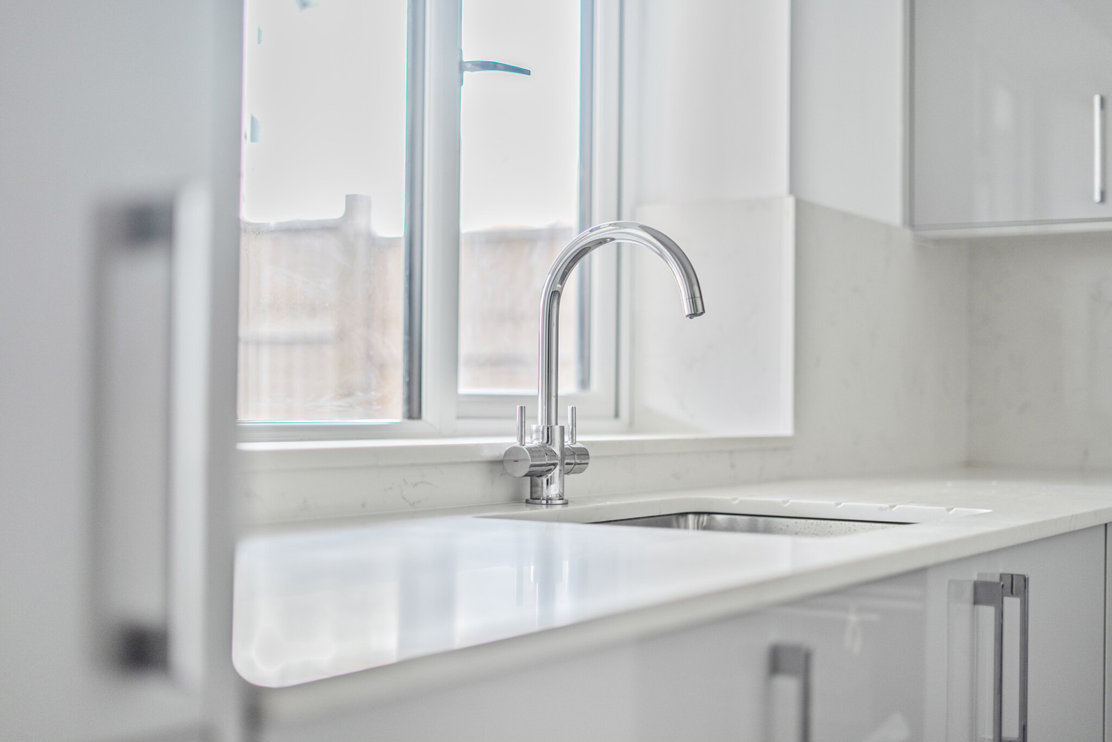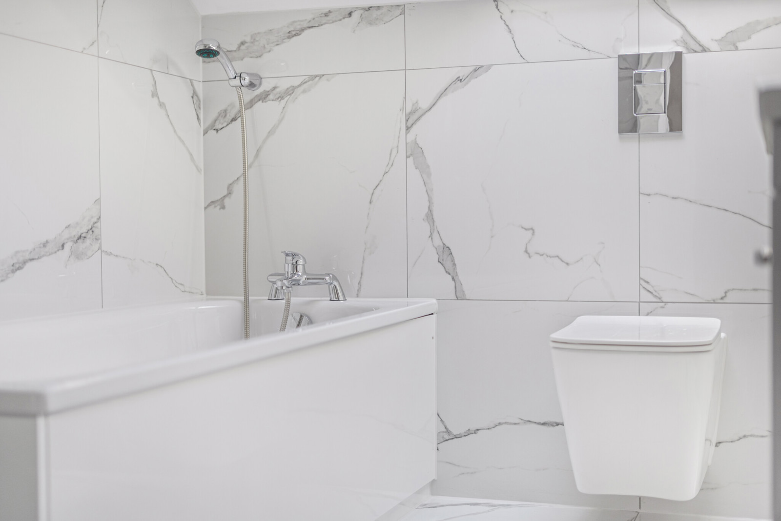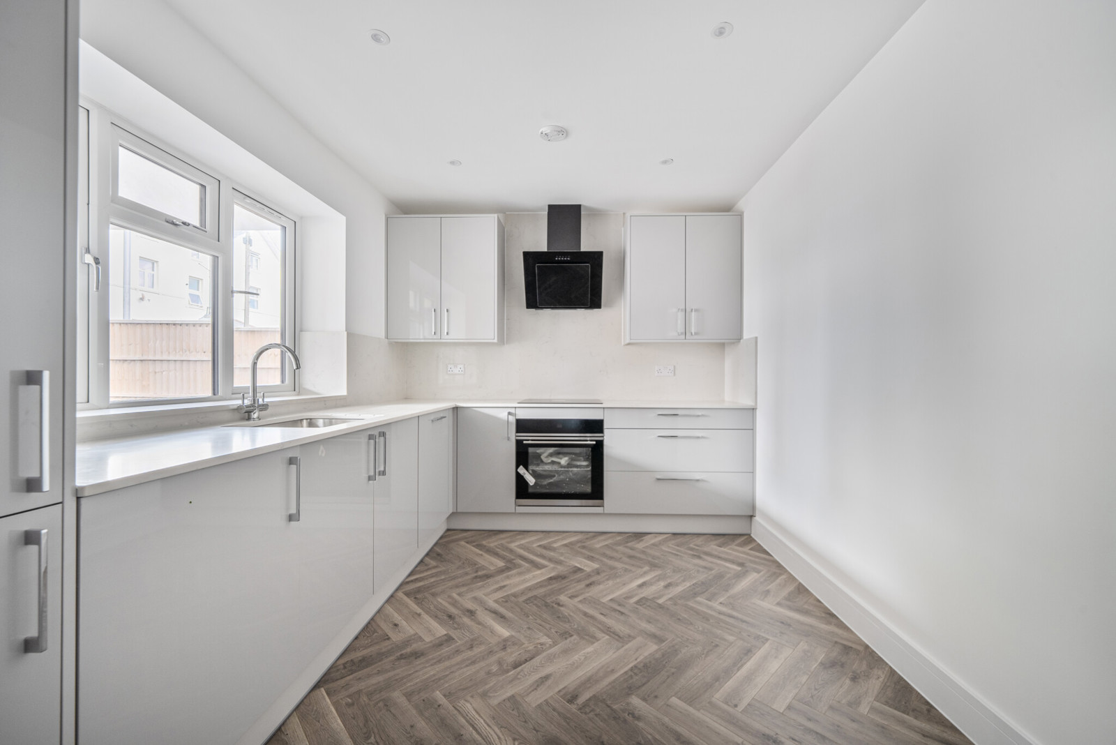 Welcoming entrance hall with cloakroom. A stylish kitchen/breakfast room featuring Quartz worktops and integrated appliances. To the rear, a spacious sitting/dining room opens through bi-fold doors onto a covered porch. Upstairs, the principal bedroom is complemented by a contemporary four-piece bathroom, complete with a rainfall shower and elegant porcelain tiling. There are two further bedrooms.