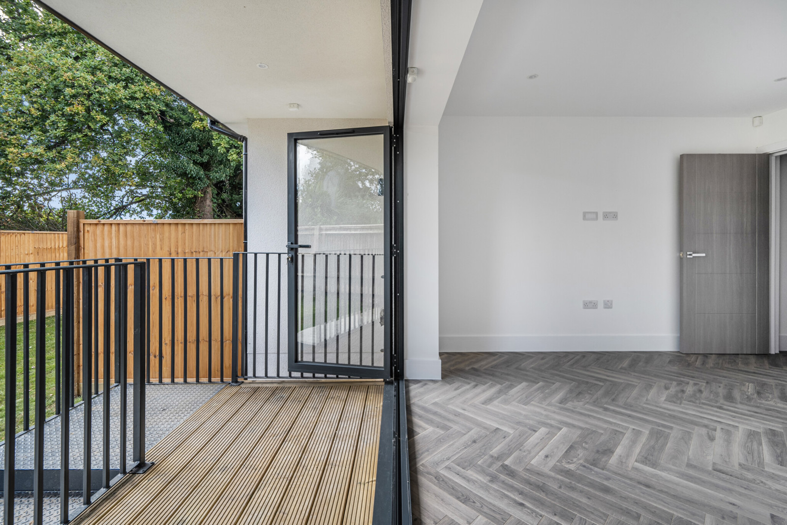 Block paved driveway and side pedestrian access. At the rear of the property there is a private and enclosed south facing garden. The covered porch leads onto a porcelain patio which is laid to lawn.