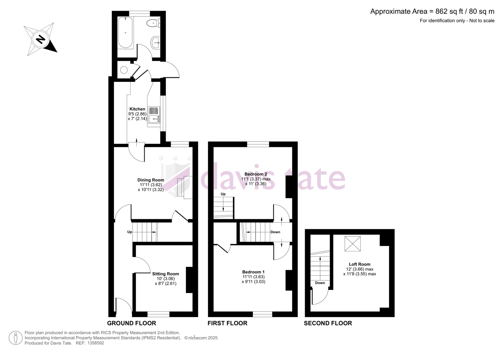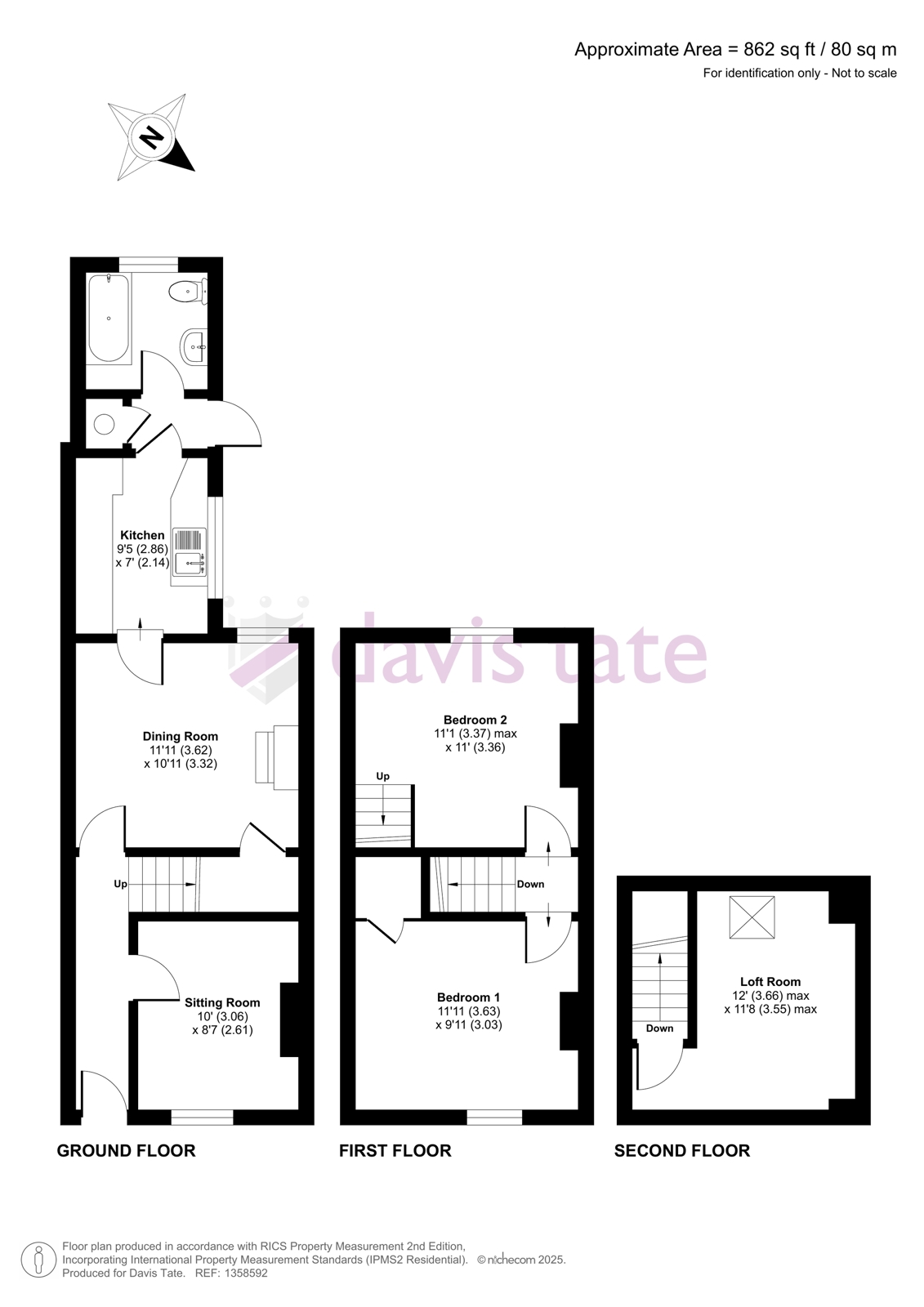 Entrance hall, two reception rooms, kitchen and bathroom. Upstairs there are two double bedrooms and a loft room.