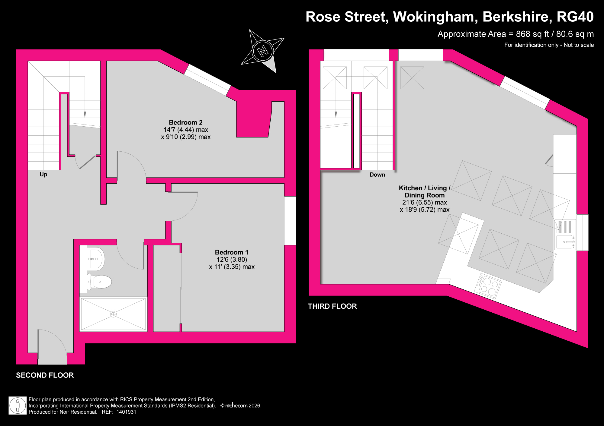 Perfectly situated on the historic and highly sought-after Rose Street in Wokingham town centre, this impressive two-bedroom duplex apartment offers a rare blend of contemporary style and urban convenience. Spanning the second and third floors, the property provides a unique sense of space and separation rarely found in town-centre apartments, all while boasting elevated views across the rooftops of Wokingham.The heart of the home is found on the top floor, which is dedicated entirely to a spectacular open-plan kitchen, living, and dining area. This expansive space, measuring over 21ft at its widest point, is bathed in natural light from a series of overhead skylights, creating a bright and airy atmosphere that is ideal for both quiet relaxation and sophisticated entertaining. The modern kitchen is seamlessly integrated, ensuring the room remains a social hub for the home.The second floor houses the private quarters, featuring two well-proportioned double bedrooms and a stylish, contemporary shower room. The master bedroom is particularly generous, offering a tranquil retreat from the bustle of the town below. Throughout the property, the neutral decor and clever architectural angles enhance the feeling of modern luxury.One of the standout features of this property is its enviable location. Being in the very heart of Wokingham, residents have a wealth of boutique shops, artisan coffee houses, and acclaimed restaurants right on their doorstep. For those needing to travel further afield, the mainline railway station is just a short walk away, providing direct access to London Waterloo and Reading.This property is an ideal choice for first-time buyers, professional commuters, or those looking for a high-quality investment in a premium Berkshire location.
