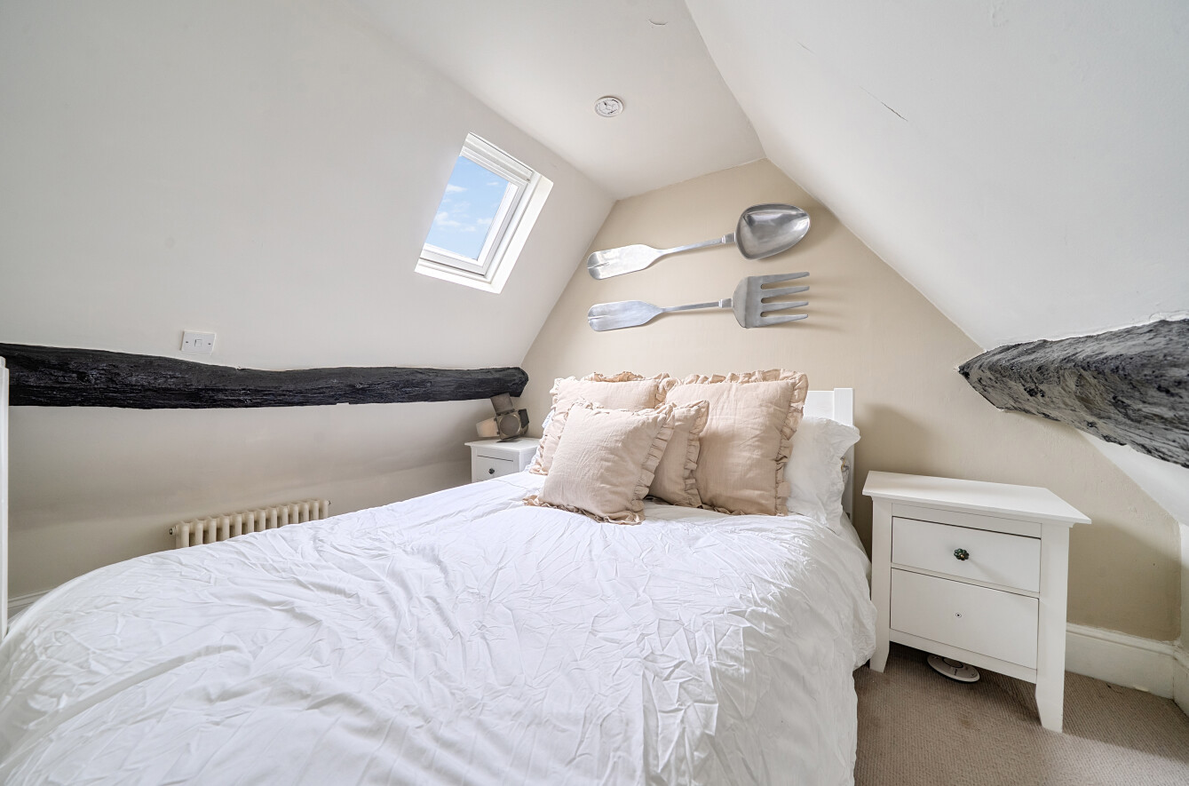 On the first floor there is a light and airy bedroom and a well-presented bathroom. You will also find a spacious room, ideal for storage. The top floor offers a useful additional room, currently used as a second bedroom with a double bed, but equally suitable as an office or hobby space.