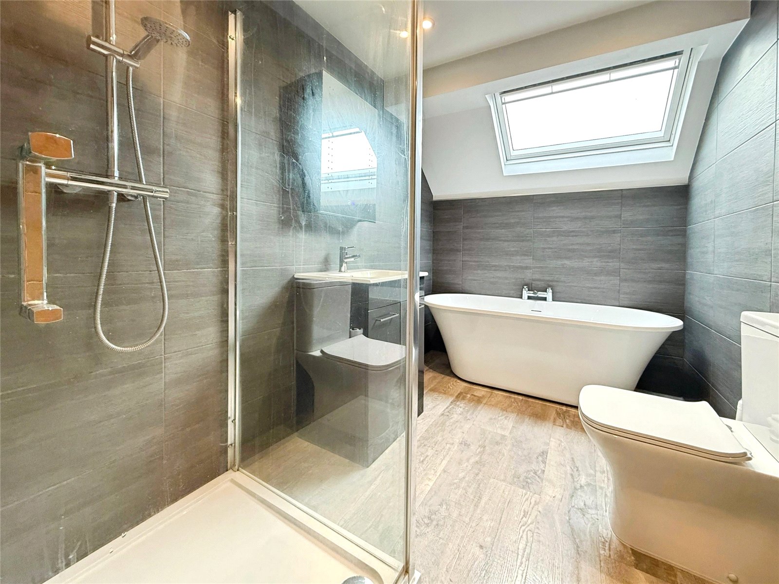 Upstairs there are four double bedrooms, a refitted family bathroom and a walk in wardrobe and en suite to the master bedroom. Both rear bedrooms feature Juliette balconies enjoying elevated views overlooking the garden.