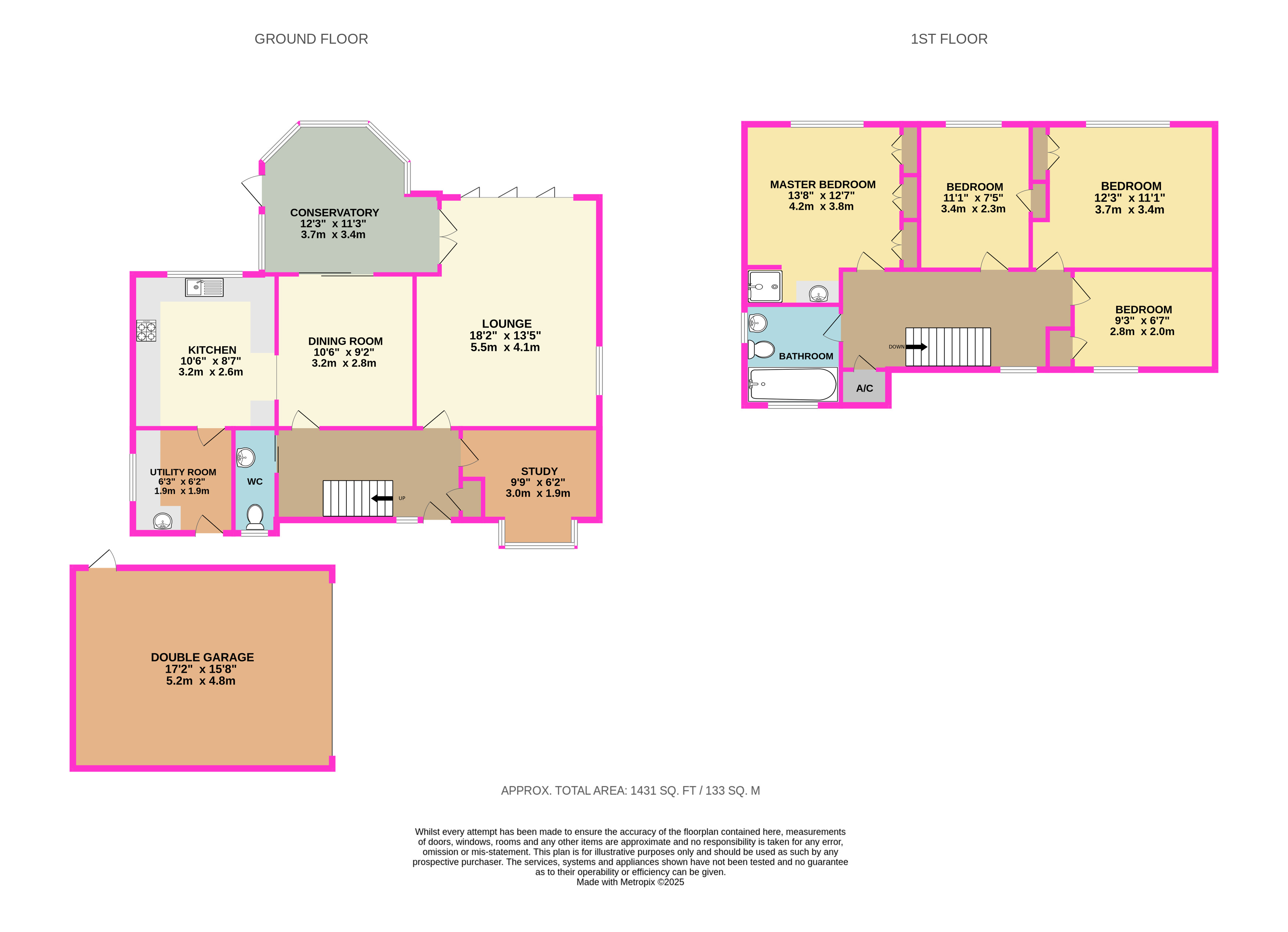 Downstairs provides versatile living space with three reception rooms including a spacious lounge, study, conservatory, semi-open plan kitchen/dining room, utility room and refitted WC.