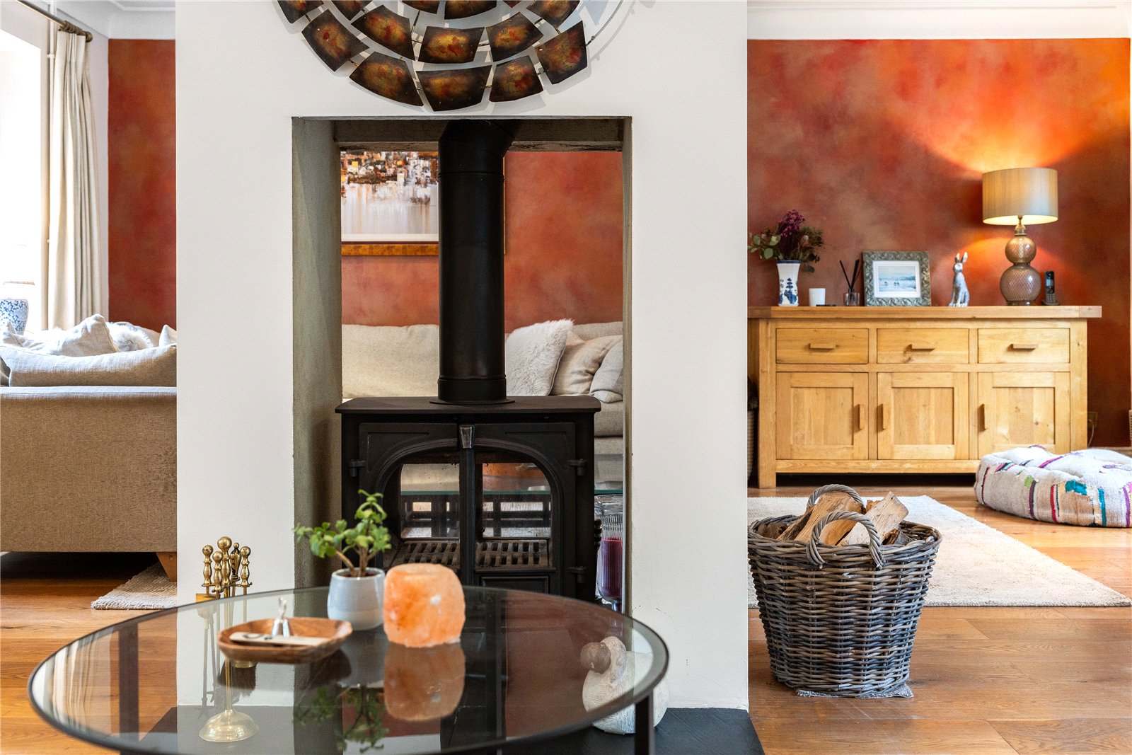 The secluded rear garden is a private sanctuary, predominantly laid to lawn and enhanced by mature trees, flowering borders, and a charming woodland backdrop. Designed for entertaining, it features a superb terrace, a detached summer house currently arranged as a serene yoga studio, and a covered seating areaperfect for enjoying the surrounding wildlife and seasonal beauty.