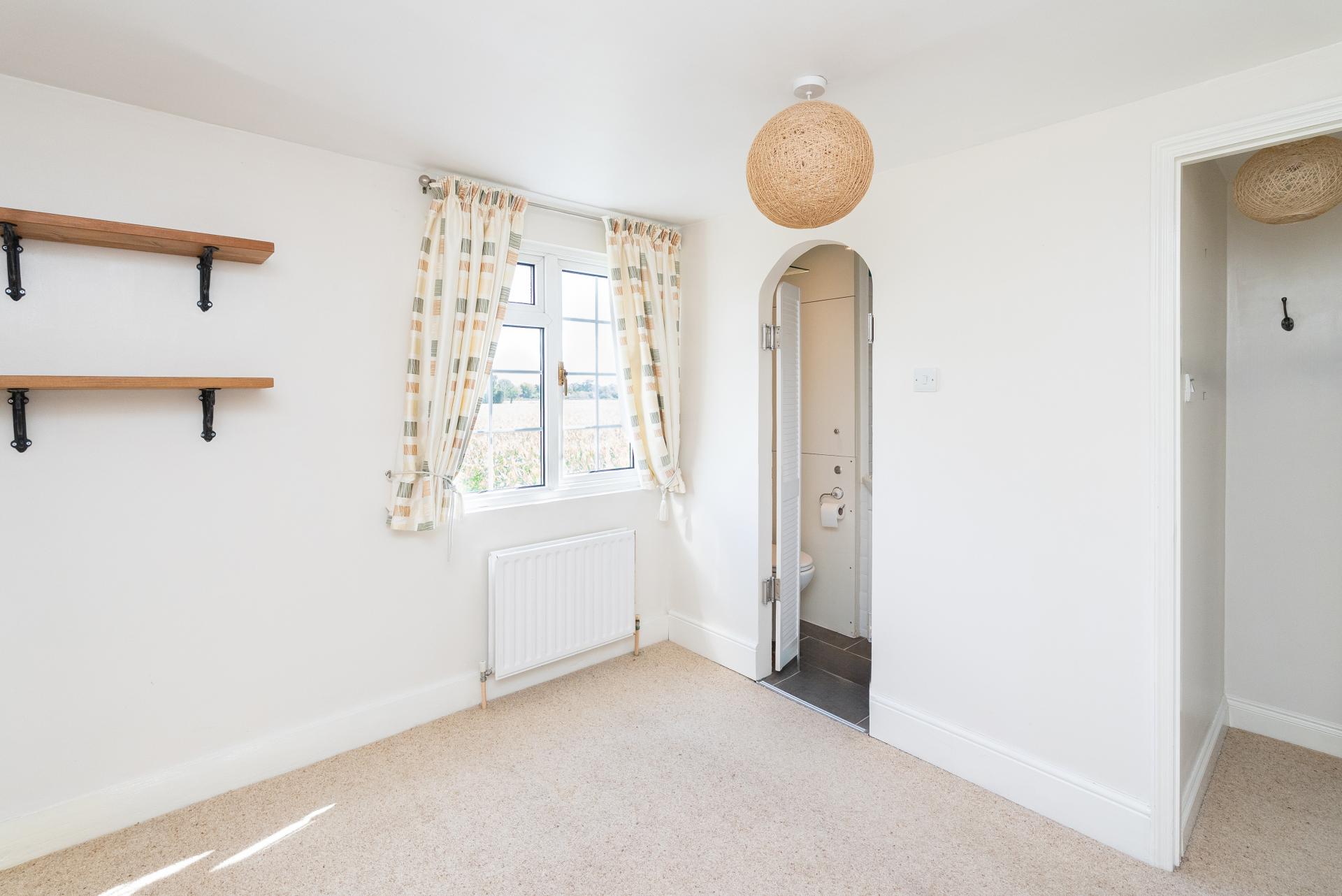 Upstairs, there are two good sized double bedrooms, the front aspect bedroom benefits from fitted storage cupboards and additional room for freestanding furniture. The rear bedroom enjoys views out over fields and benefits from an ensuite shower room.