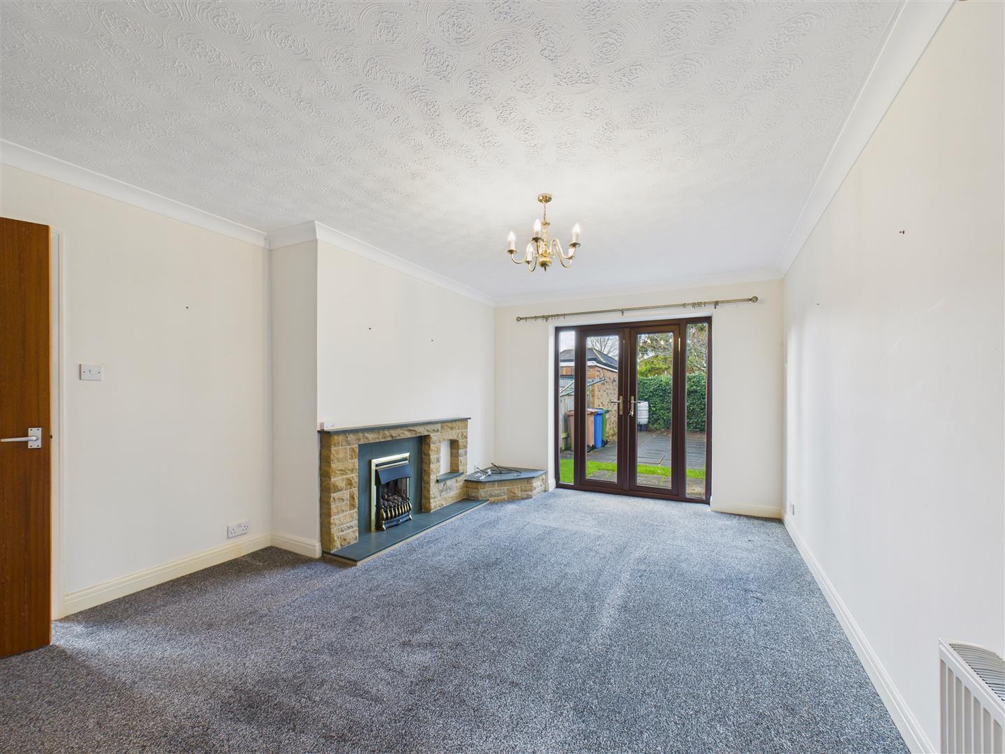 Lounge - To the rear of the house with double doors opening out to the garden. Stone fire surround housing living flame gas fire.