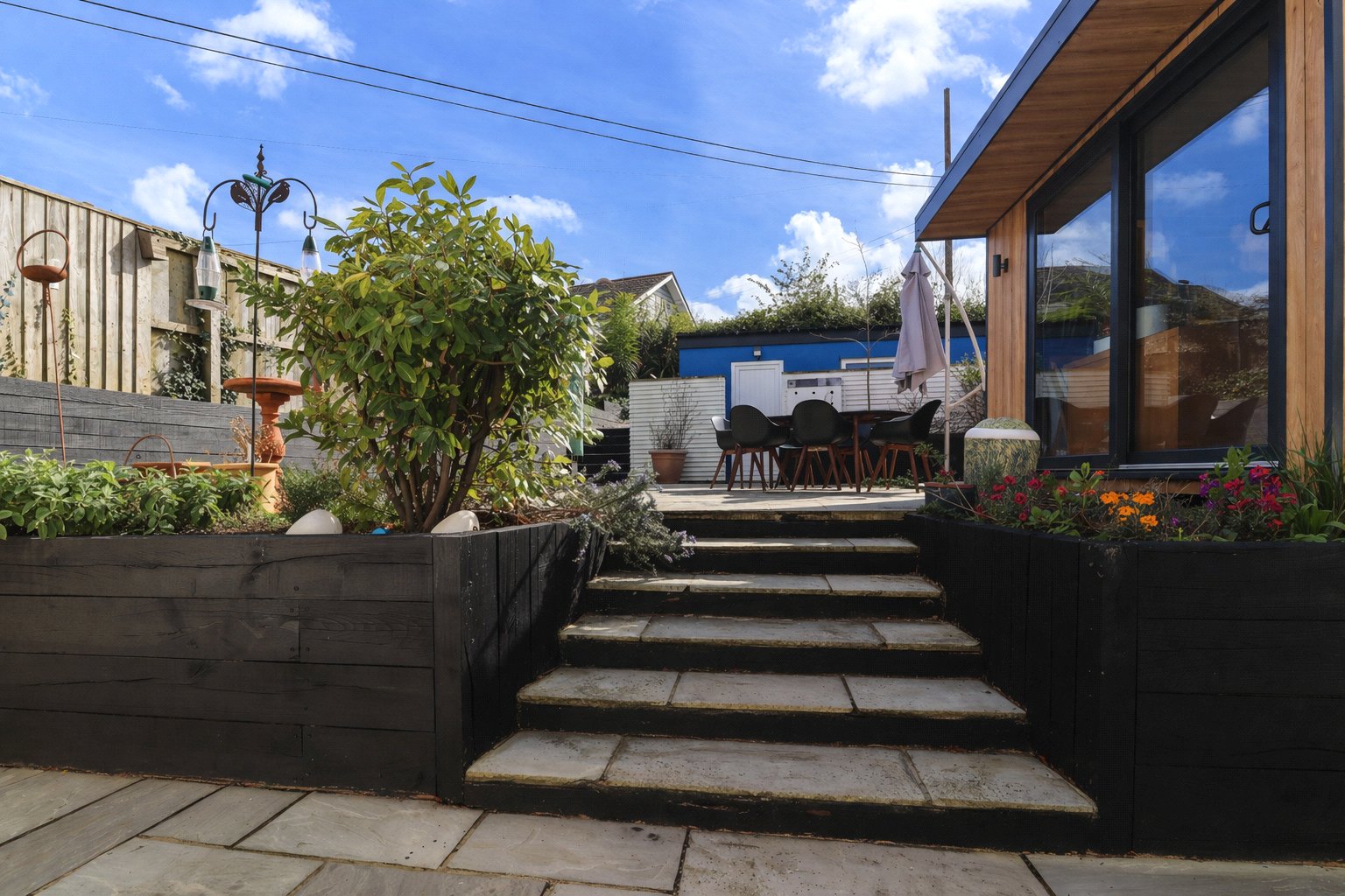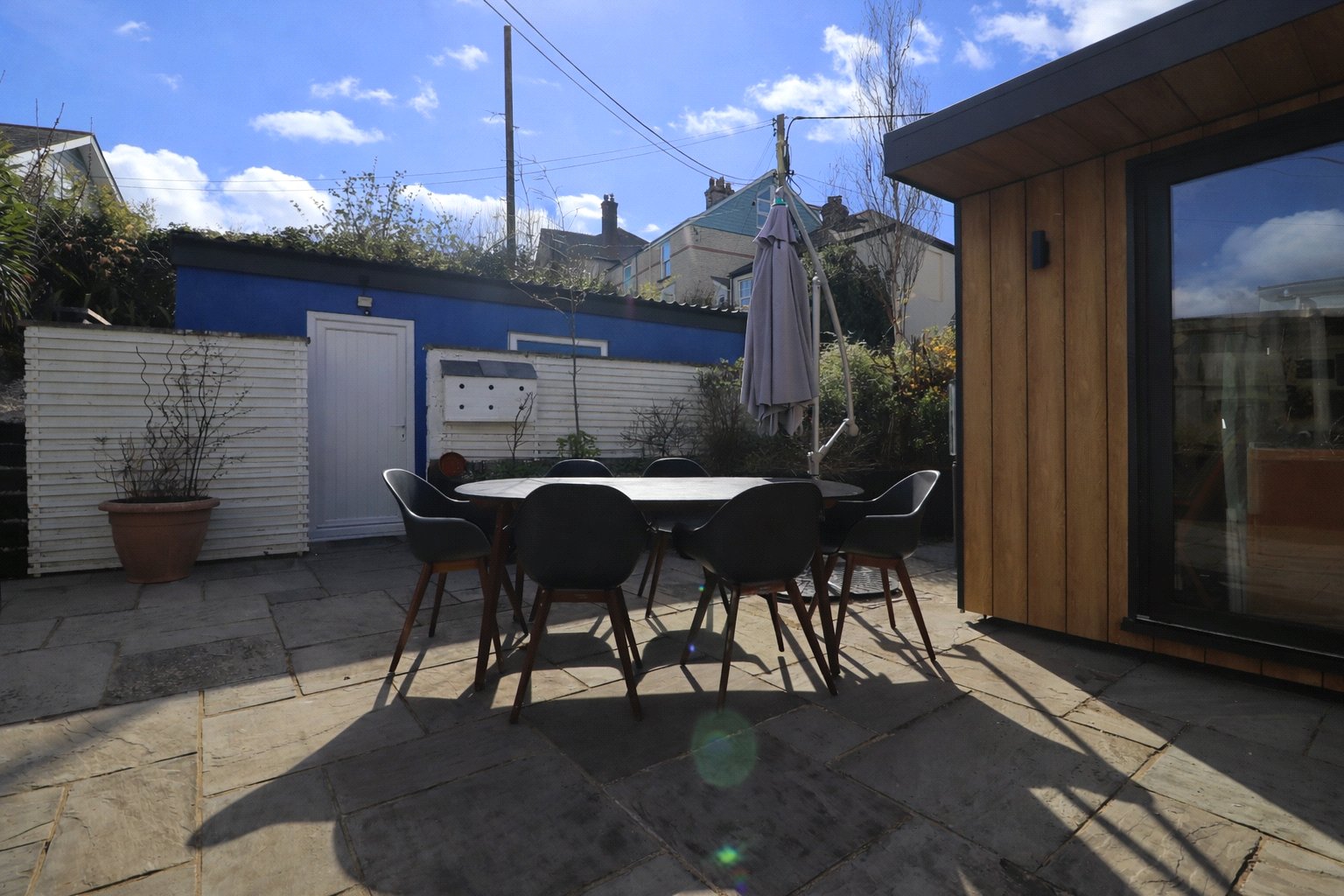 Externally, the rear garden is beautifully landscaped and impressive in size. Thoughtfully designed offering a variety of planting areas and ample space both to relax and soak up the sunshine. A recently constructed timber garden room is also in the garden, fully insulated with power and lighting, providing an ideal studio or hobby room. A gently sloping lawn stretches around the property, providing a generous outdoor space that is both functional and easy to maintain. From here there is also access to the garage and parking spot, a real advantage in Appledore Village. At the front of the property is a cellar storage room offering even more storage space and sizeable enough to fit surf boards and outside furniture.