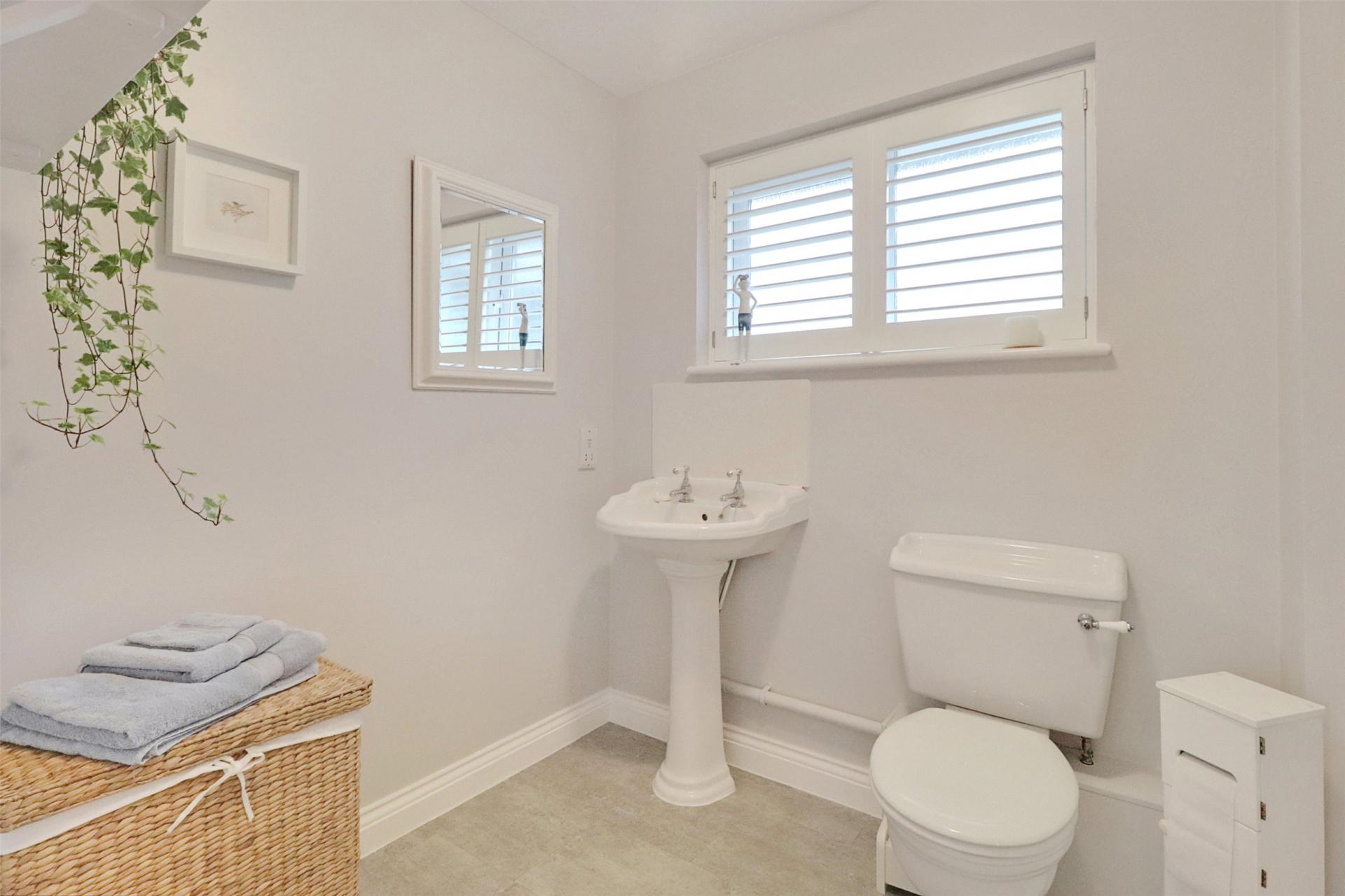On the first floor of the main house, there are four further double bedrooms, with the smallest currently used as a craft room. The principal bedroom overlooks the rear garden, featuring built-in wardrobes and a second en-suite with a WC, wash basin, and bath. A family bathroom completes the floor, fitted with a close-coupled WC, wash basin, and bath with shower over