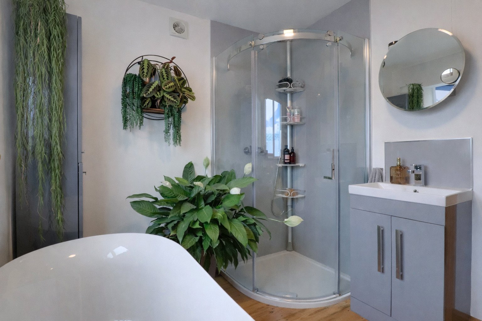 Fully modernised and presented to a high standard, Tree Tops presents a rare opportunity to acquire a highly individual and superbly positioned home. The accommodation in brief comprises a dual aspect Living Room with garden outlook. A well appointed Kitchen/Diner with modern fitted units, quartz work surfaces, integrated appliances and breakfast bar, and opens through to the Sun Room. This is a versatile reception space with access to the rear garden, ideal as a home office, or quiet seating area or as the present owners use, as a Dining Room.