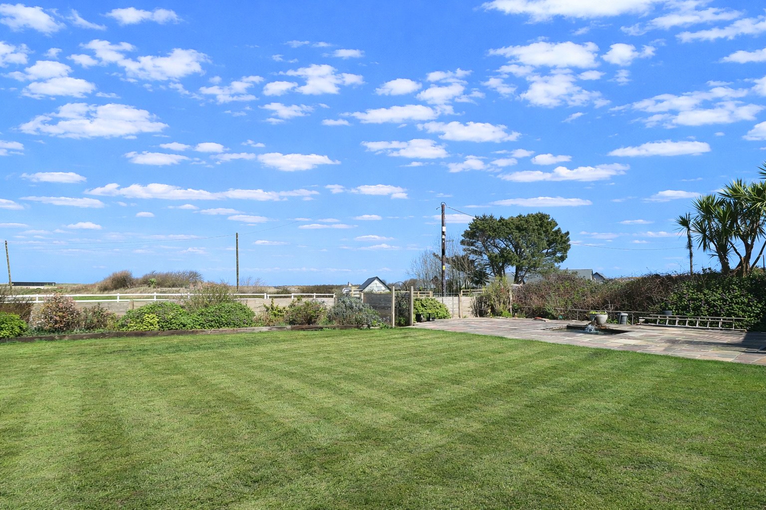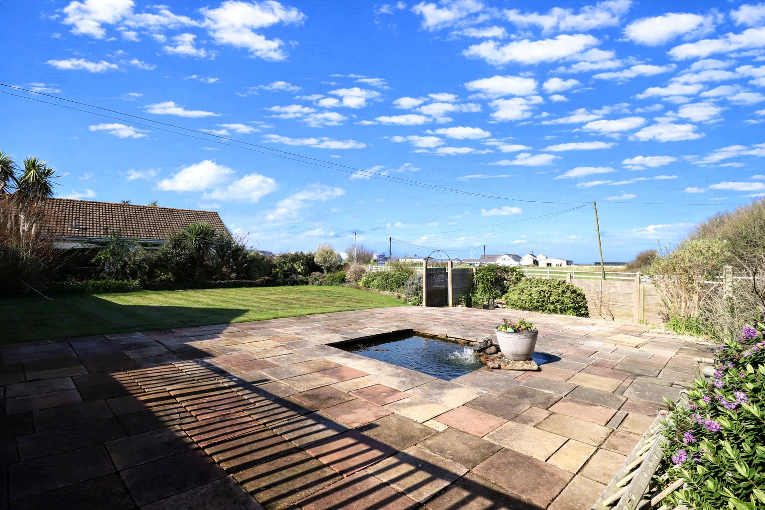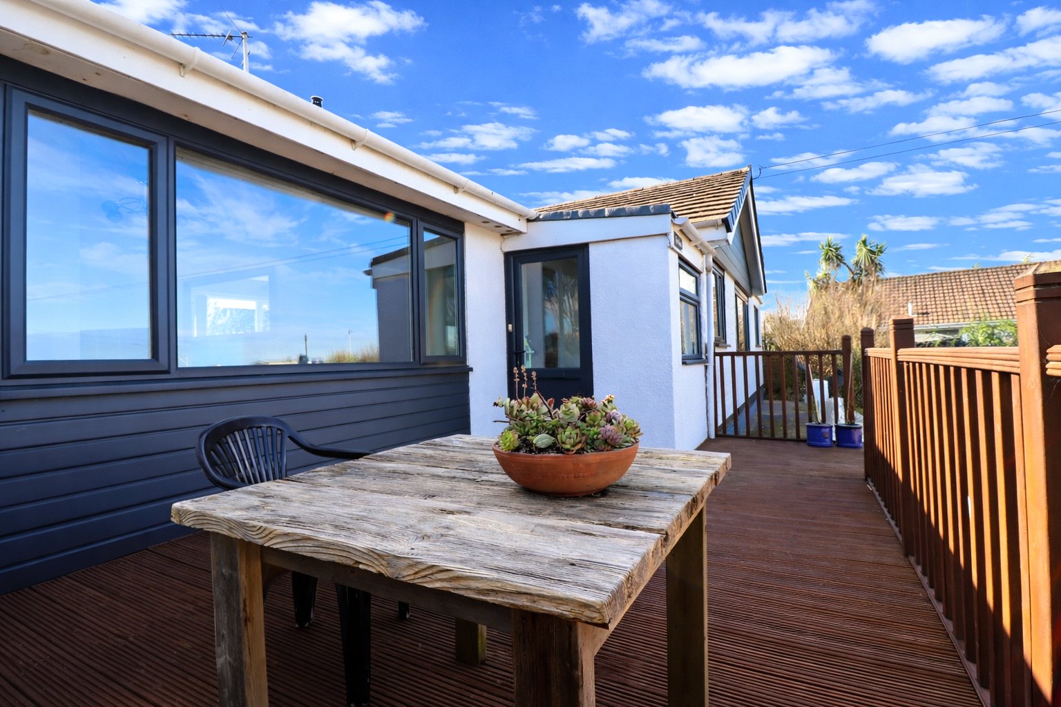 The two dwellings are linked by a level rear patio garden, while the principal bungalow also enjoys its own enclosed lawned front garden, with a decked seating area, and patio with fishpond. This delightful area provides an ideal place to sit and enjoy the far-reaching outlook over Northam Burrows country Park.