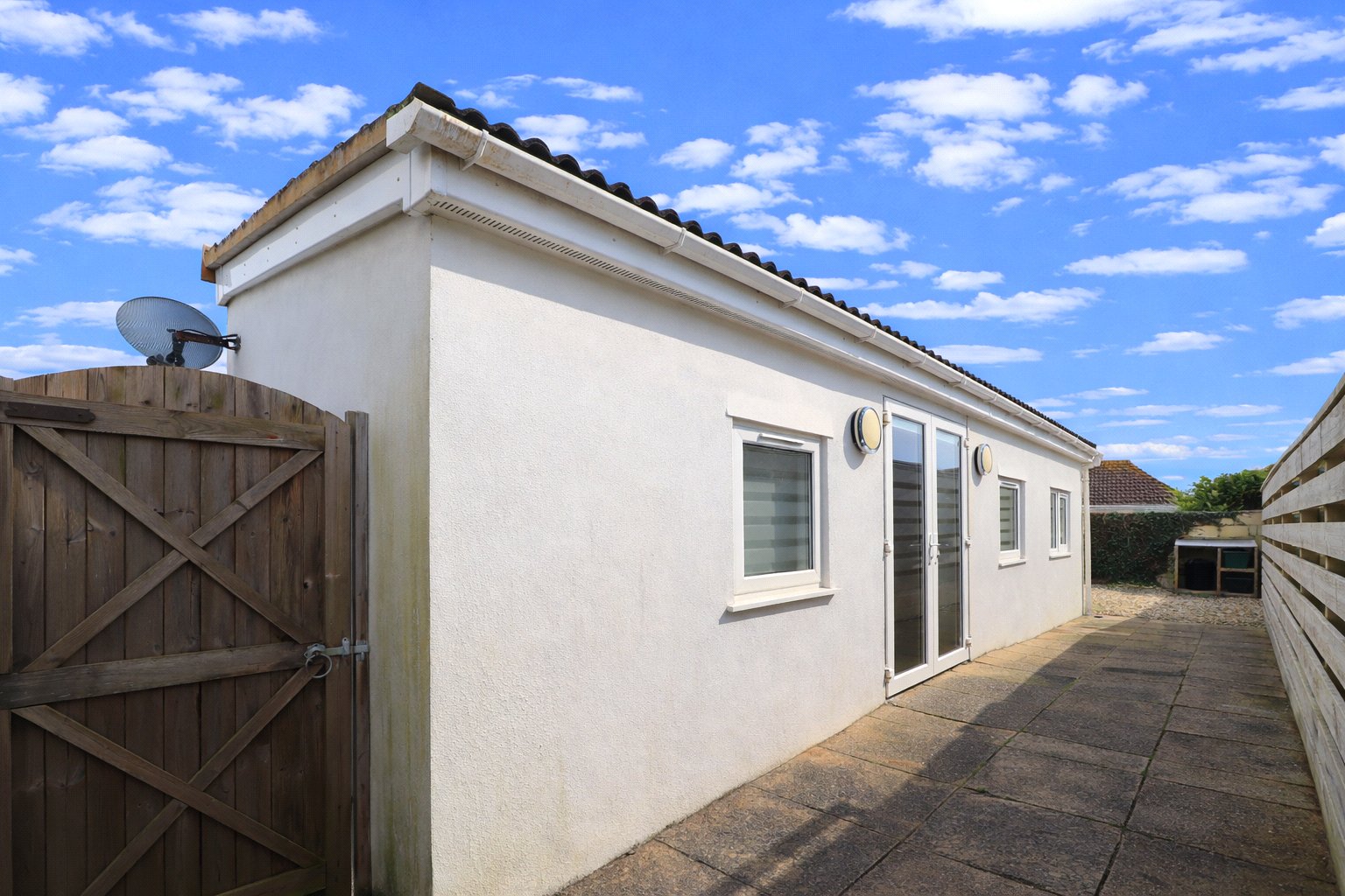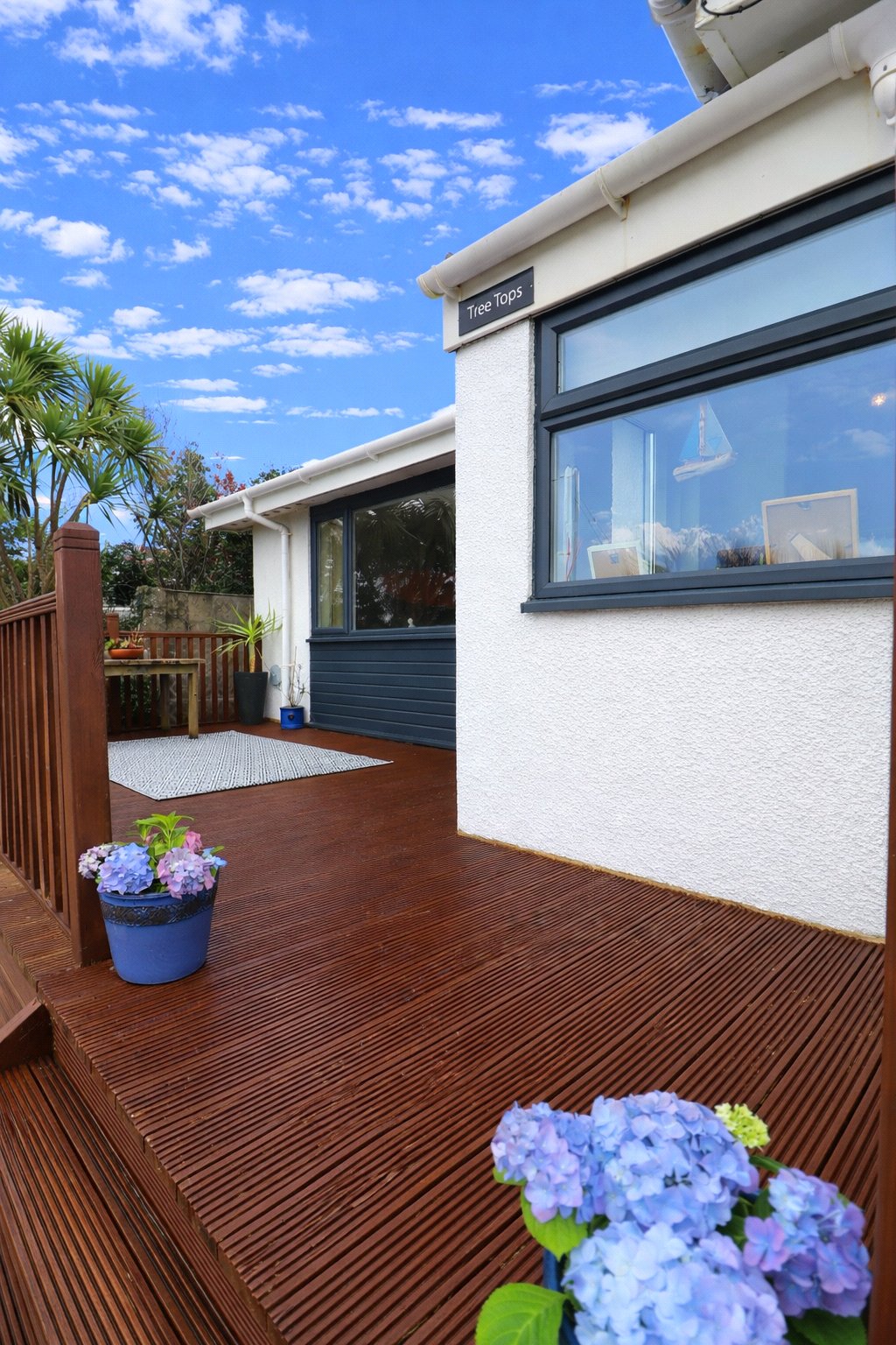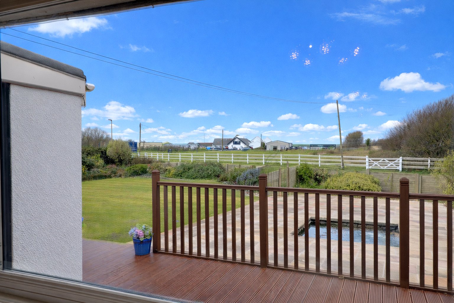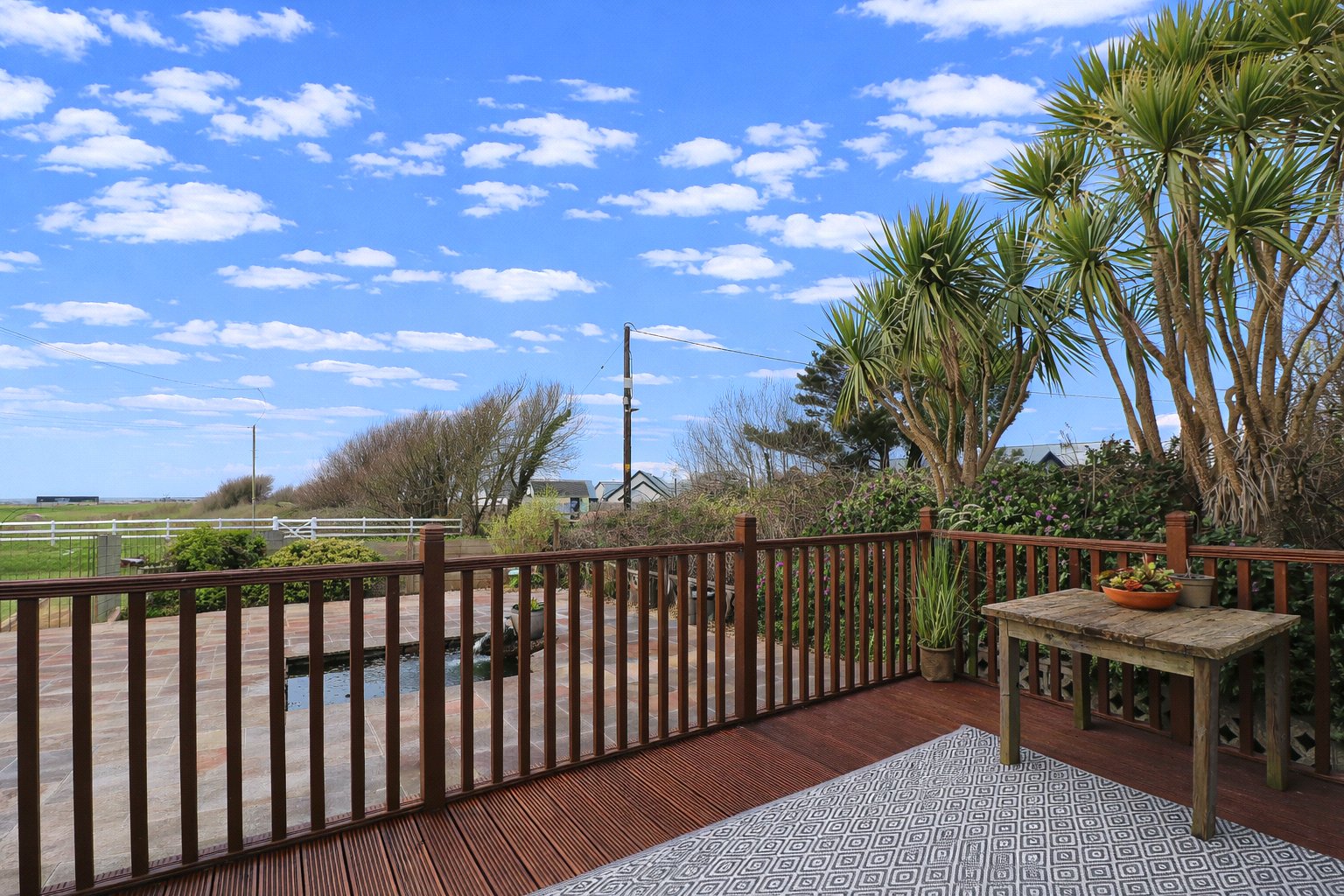 The two dwellings are linked by a level rear patio garden, while the principal bungalow also enjoys its own enclosed lawned front garden, with a decked seating area, and patio with fishpond. This delightful area provides an ideal place to sit and enjoy the far-reaching outlook over Northam Burrows country Park.