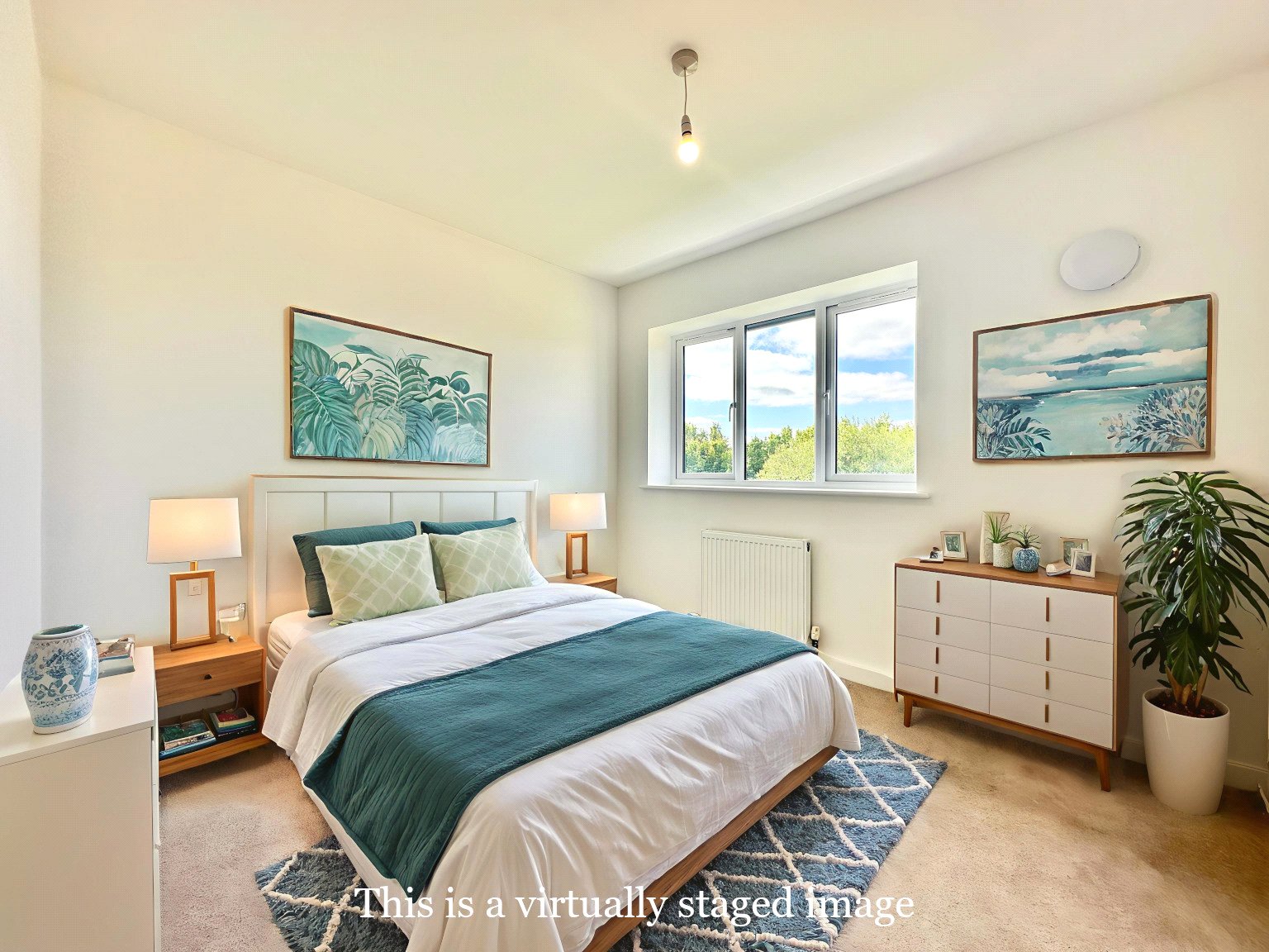 The generous main bedroom enjoys its own stylish en suite shower room and an adjacent built-in wardrobe.