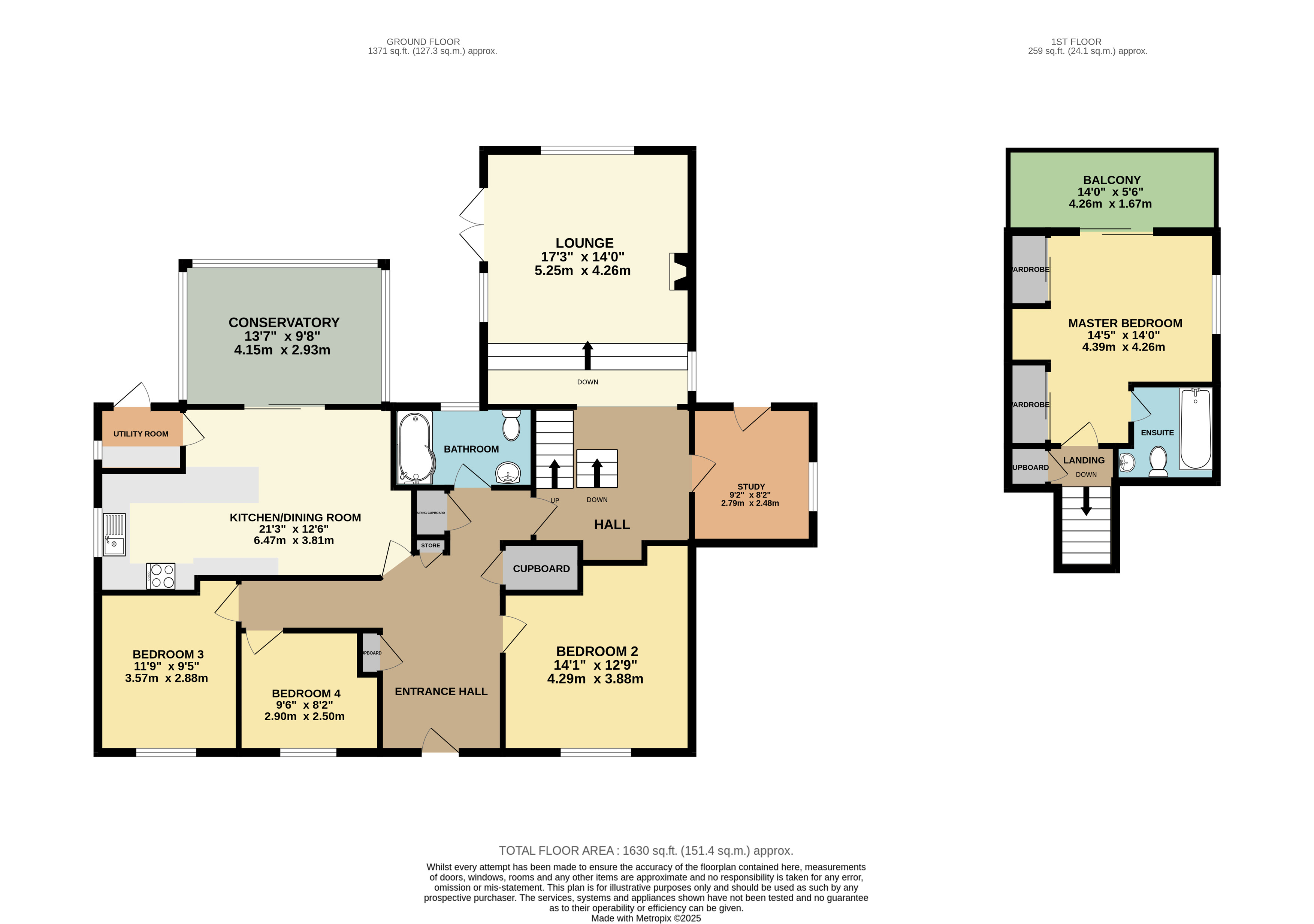 Master Bedroom 14'2" x 14'5" (4.32m x 4.4m).