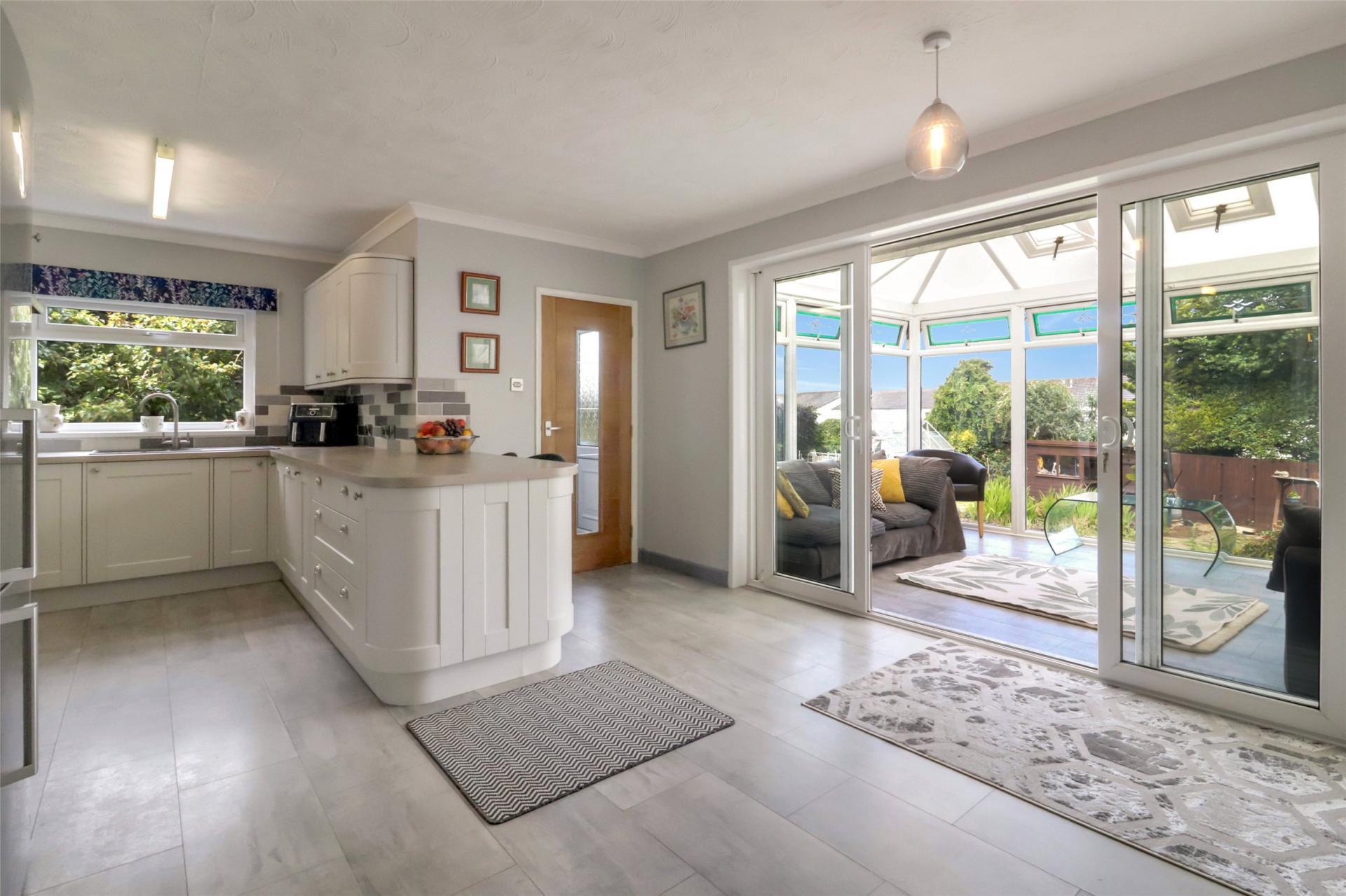 The open layout creates a fantastic social space for family dining or entertaining, with Patio doors leading directly onto the large rear facing conservatory allowing for additional seating with views over the garden and far reaching sea views.