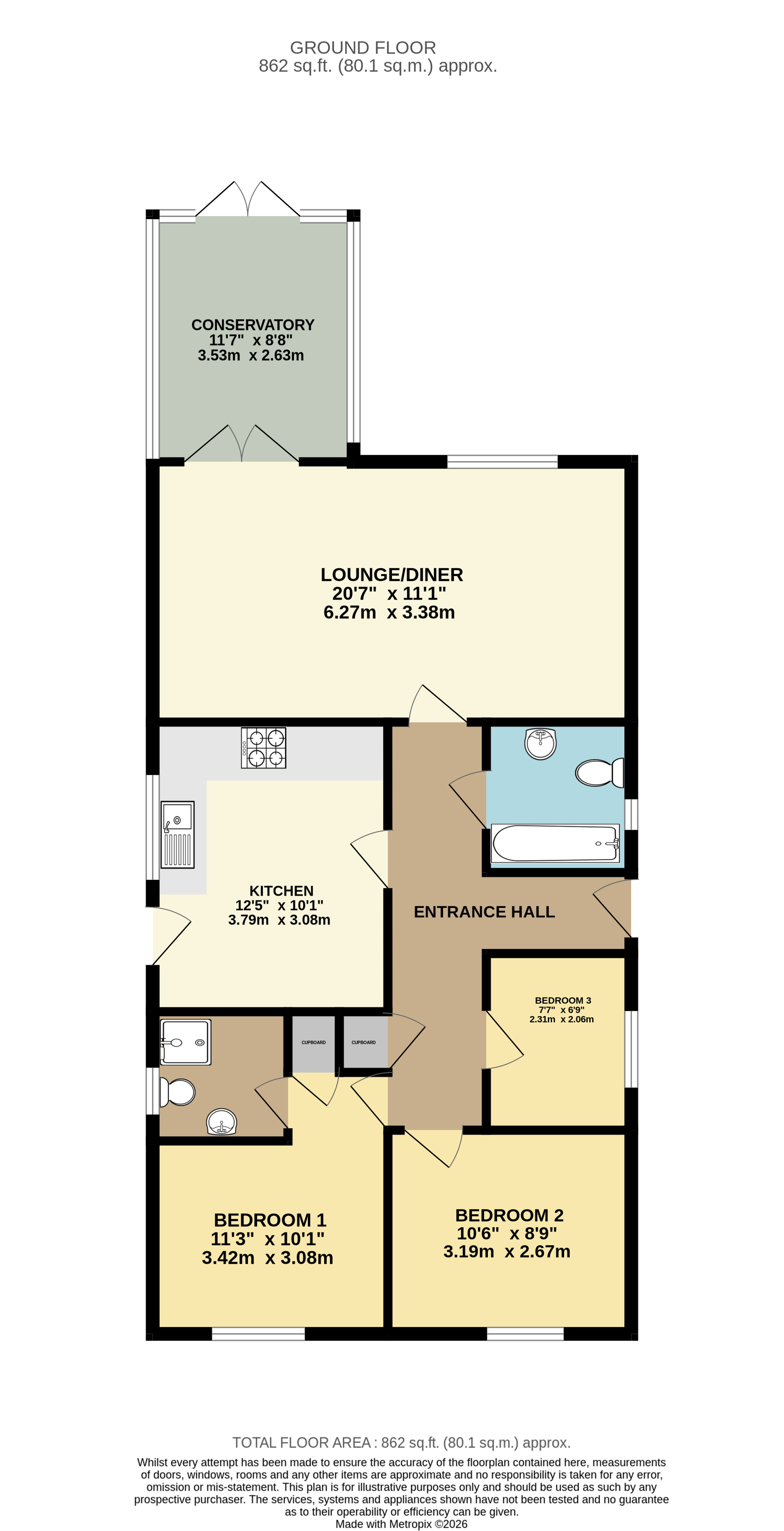 Bedroom Three 7'7" x 6'9" (2.3m x 2.06m).