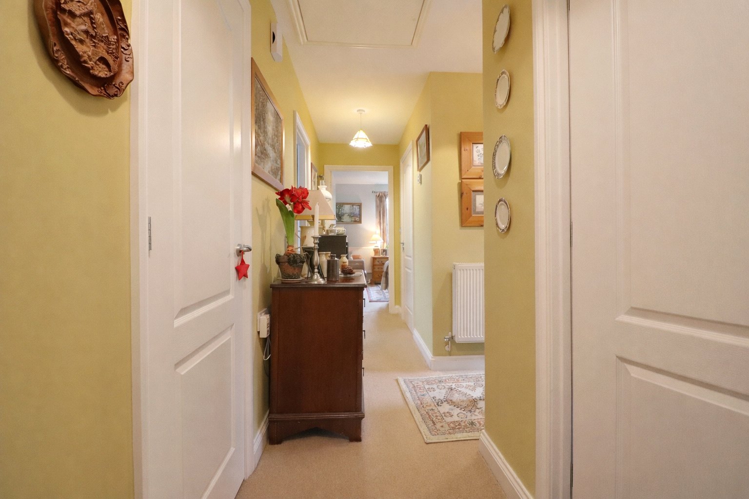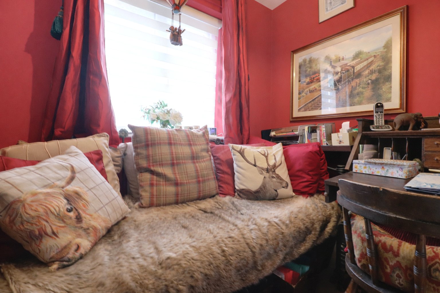 There are three well-proportioned bedrooms, including two doubles. The principal bedroom benefits from an en-suite shower room, while the third bedroom, currently used as a home office, is a single. A separate bathroom is fitted with a modern white suite and bath with shower over.