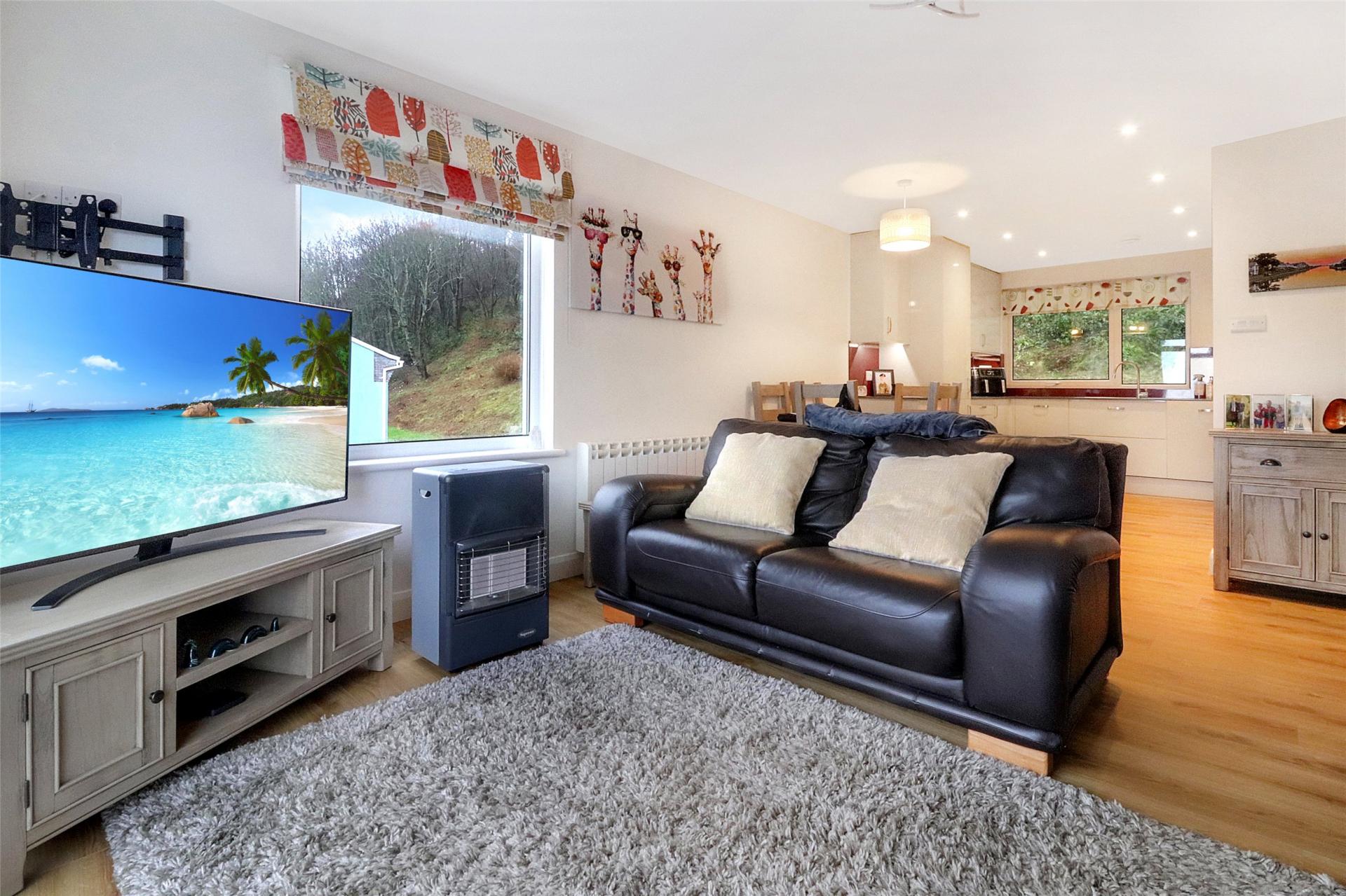 Continuing through the hallway you enter the spacious open plan lounge / kitchen / dining room. This generous space easily accommodates substantial living and dining furniture, with a wide front window drawing in abundant natural light and offering further sea views stretching towards Lundy Island.
