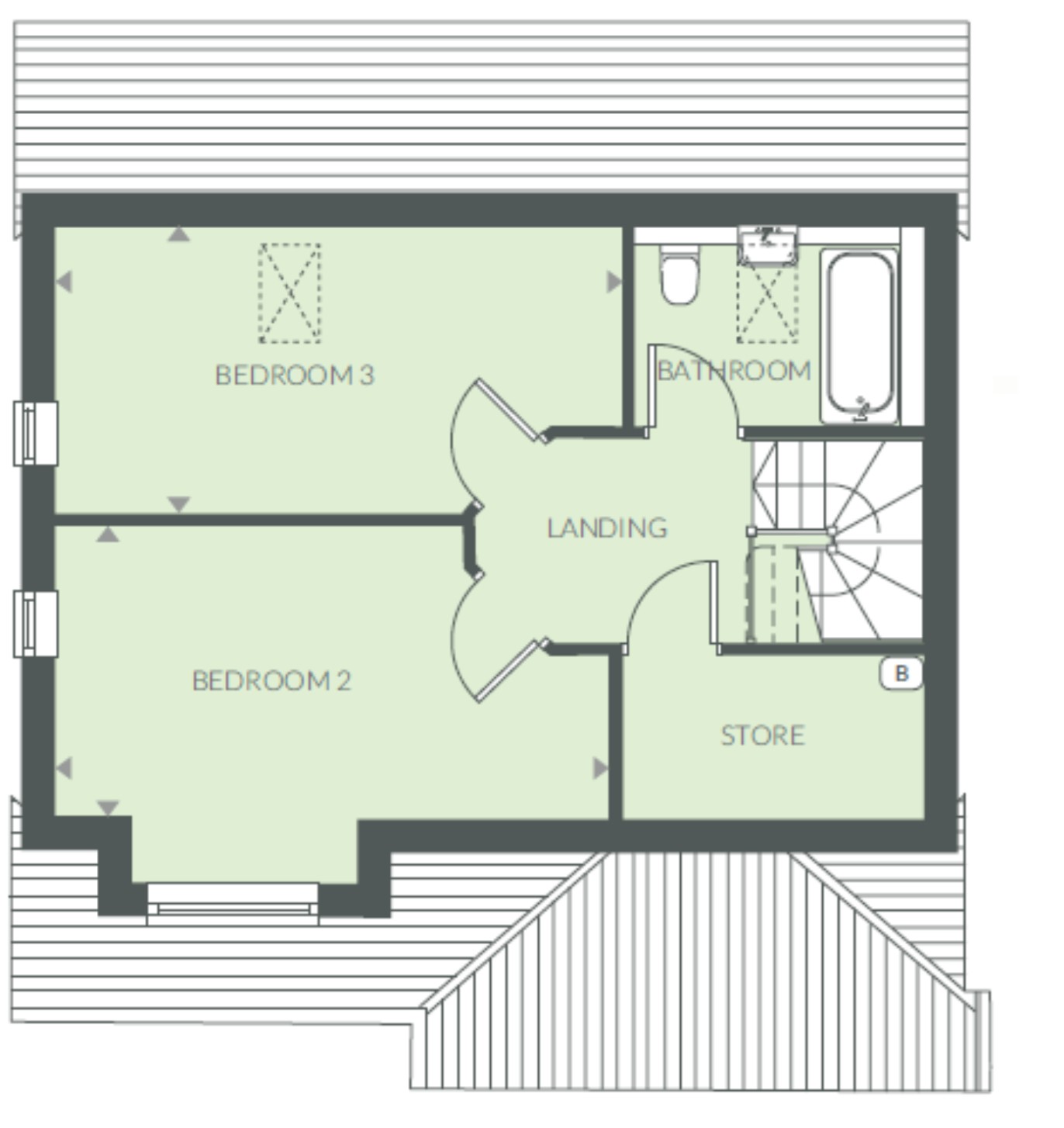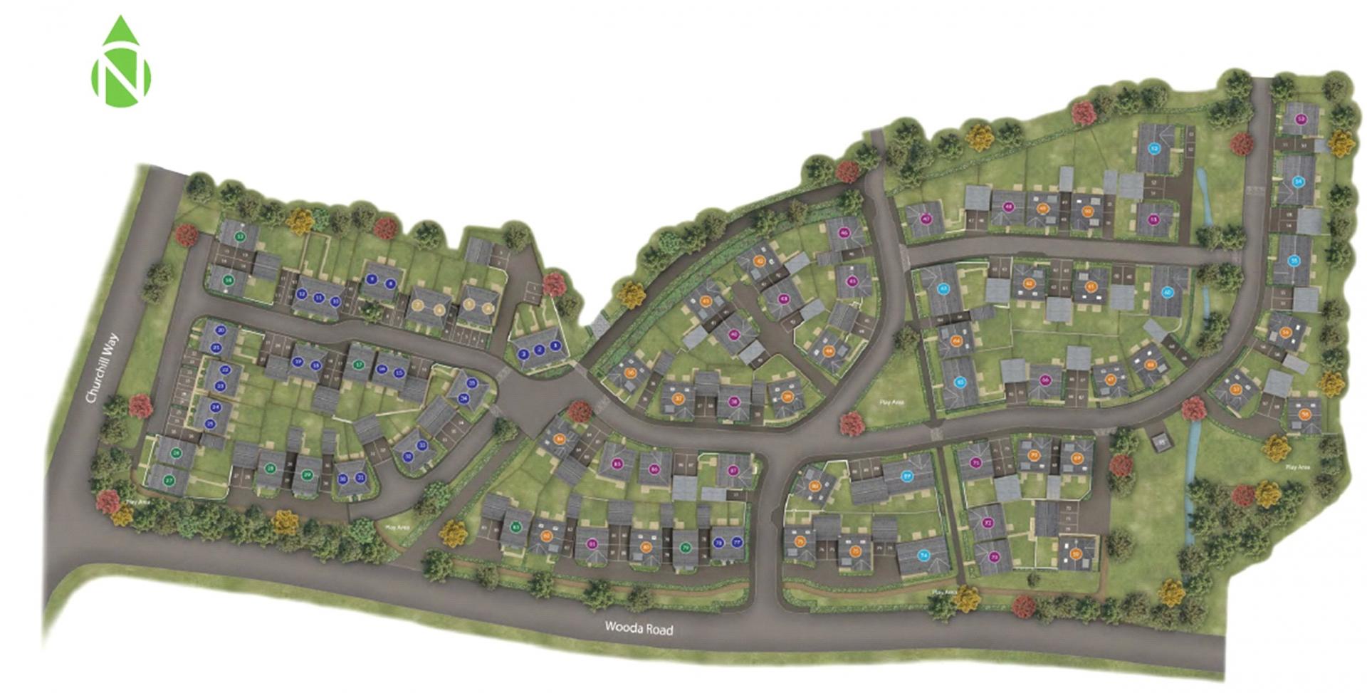 Home 59 is a delightful chalet style bungalow with lounge, kitchen/diner, master bedroom with ensuite on the ground floor. The first floor offers 2 good size bedrooms, family bathroom and an extremely useful store room. Outside you will find enclosed gardens, garage and 2 parking spaces.