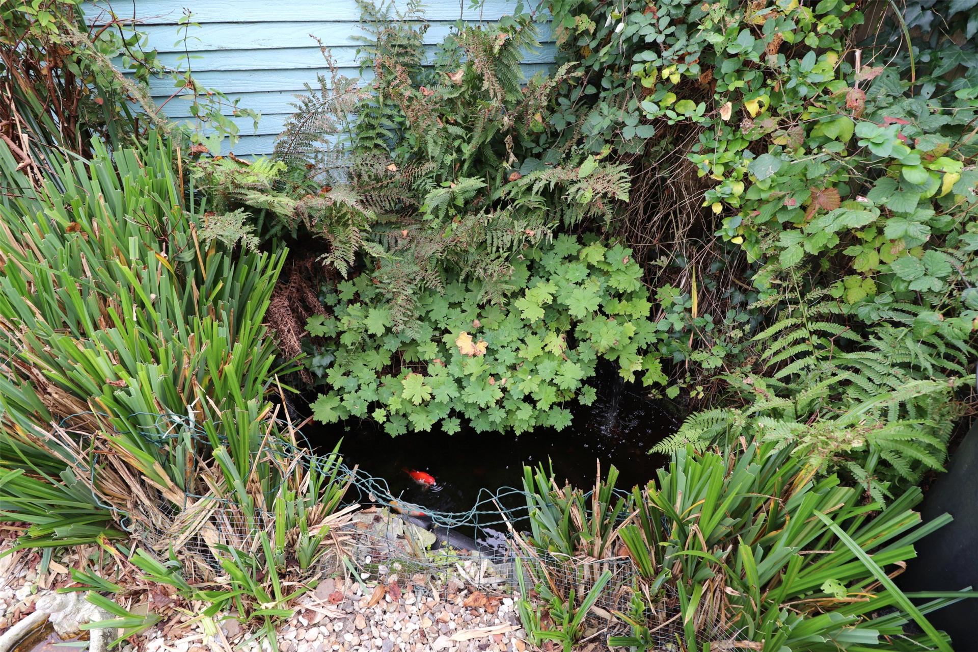LANDSCAPED REAR GARDEN WITH SHED AND POND
