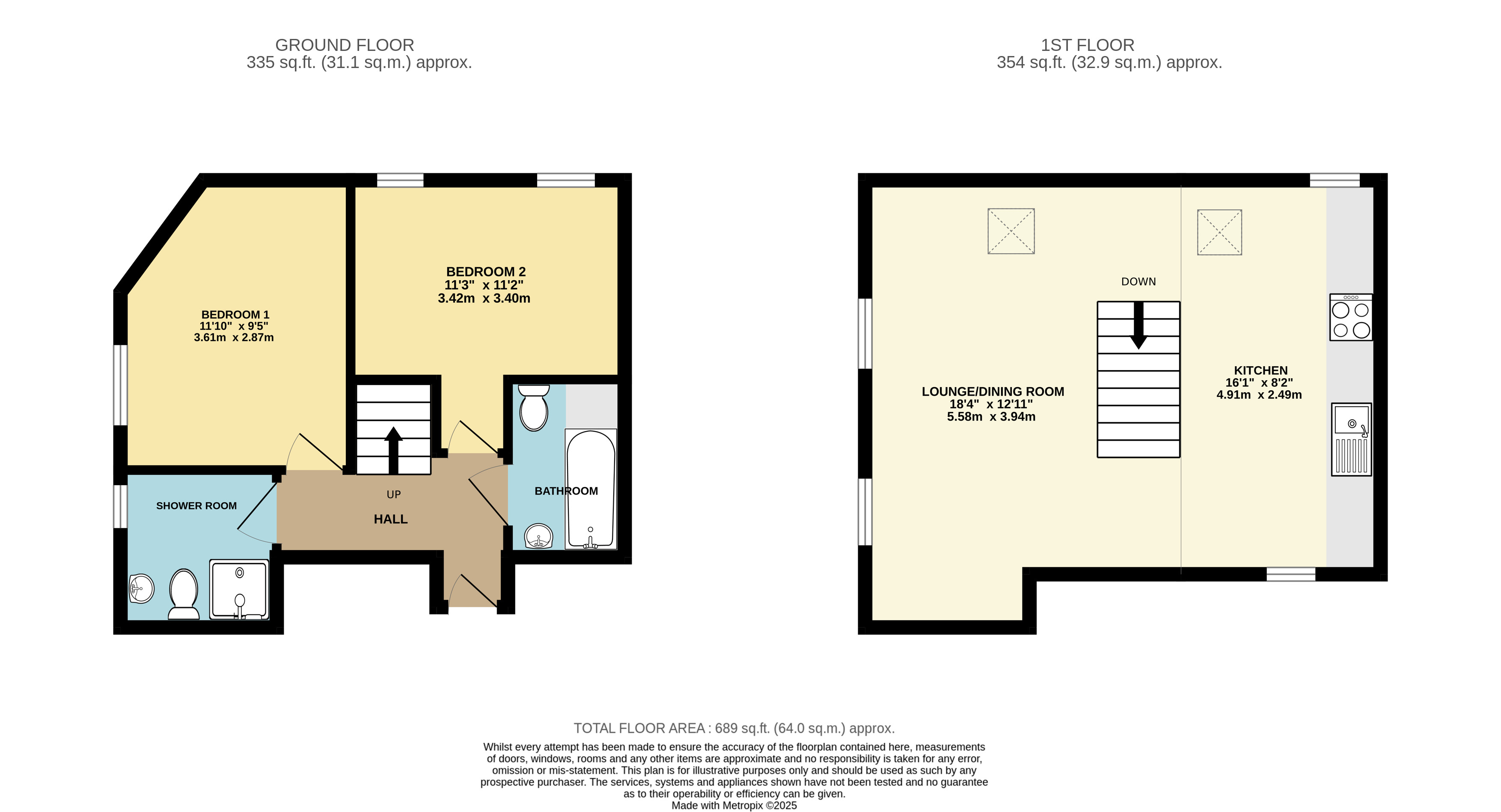 Bedroom 2 11'3" x 8'2" (3.43m x 2.5m).