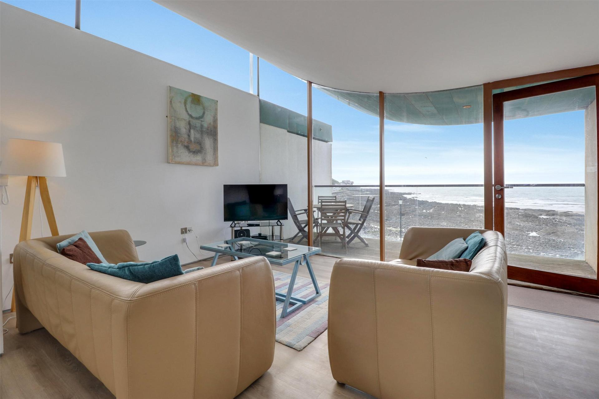 Occupying a truly enviable position along the sought-after Westward Ho! seafront, this beautifully presented two bedroom duplex apartment offers contemporary coastal living with uninterrupted panoramic sea views.
