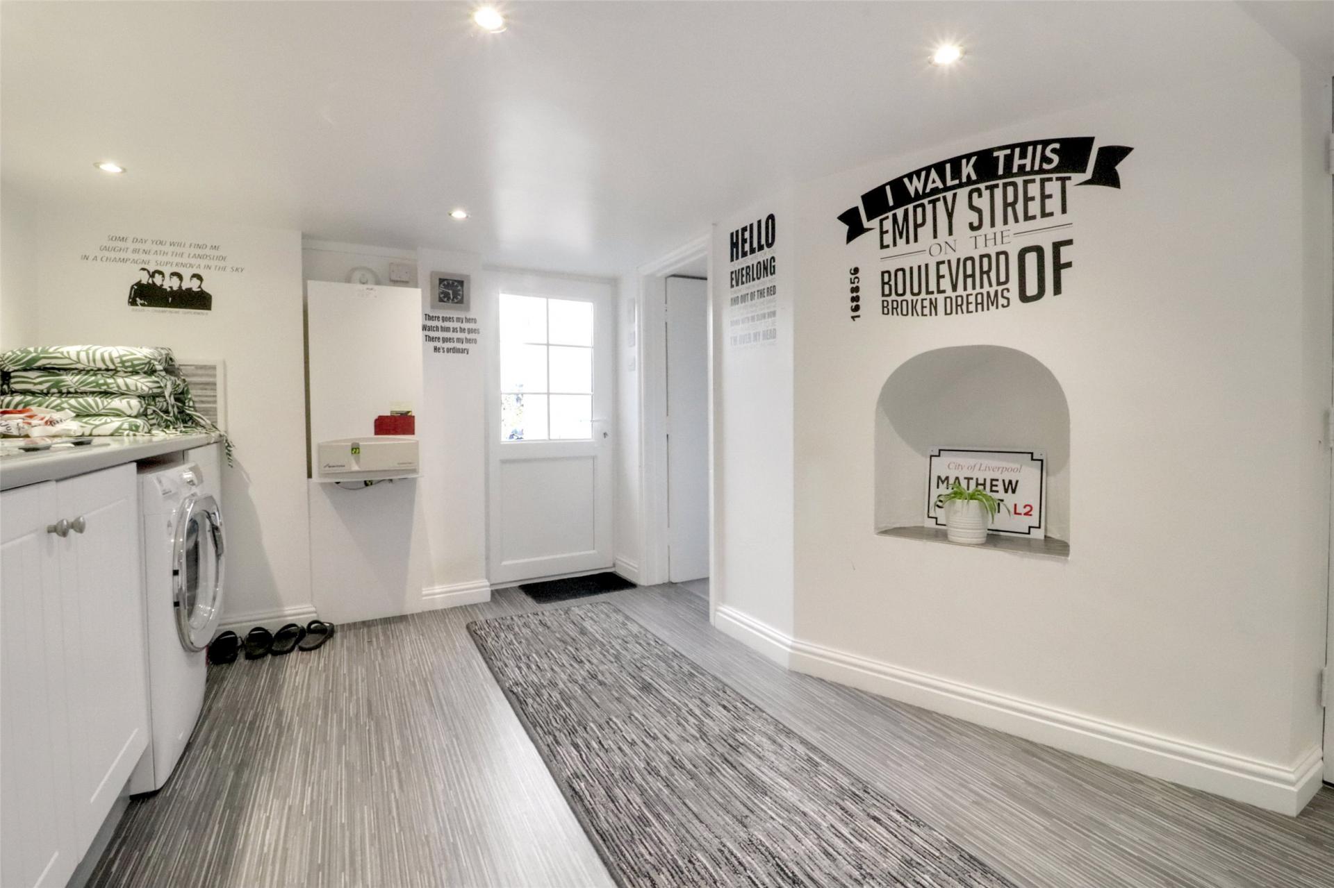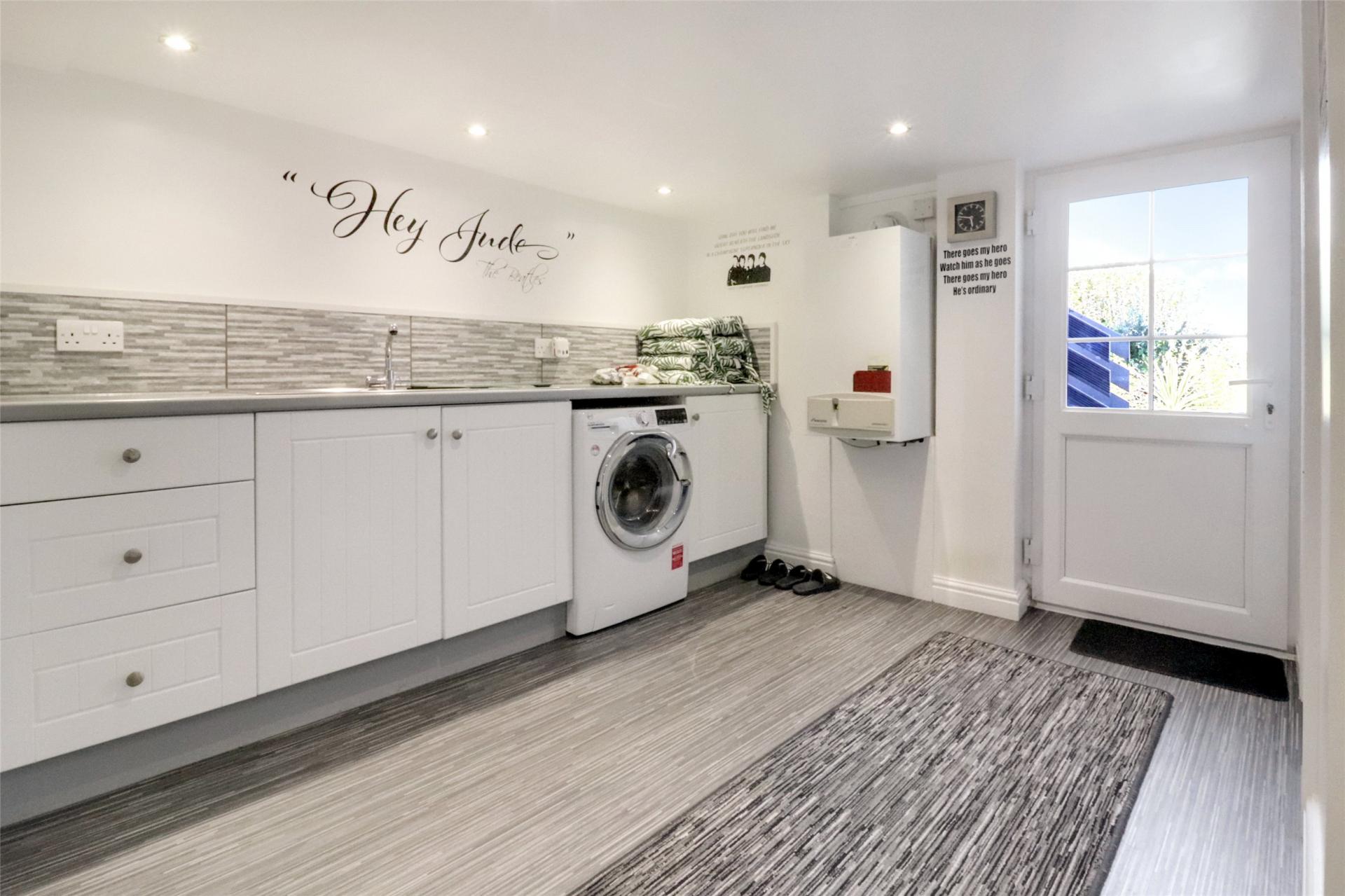 The lower ground floor has a useful utility room with built in storage and space for a fridge freezer and washing machine. There is a modern shower room and a door to the garage/workshop which has an up and over door onto the street. Also on this level is the charming garden room which has patio doors to the garden, this room could also be used as a study, art studio, gym or even a further bedroom.
