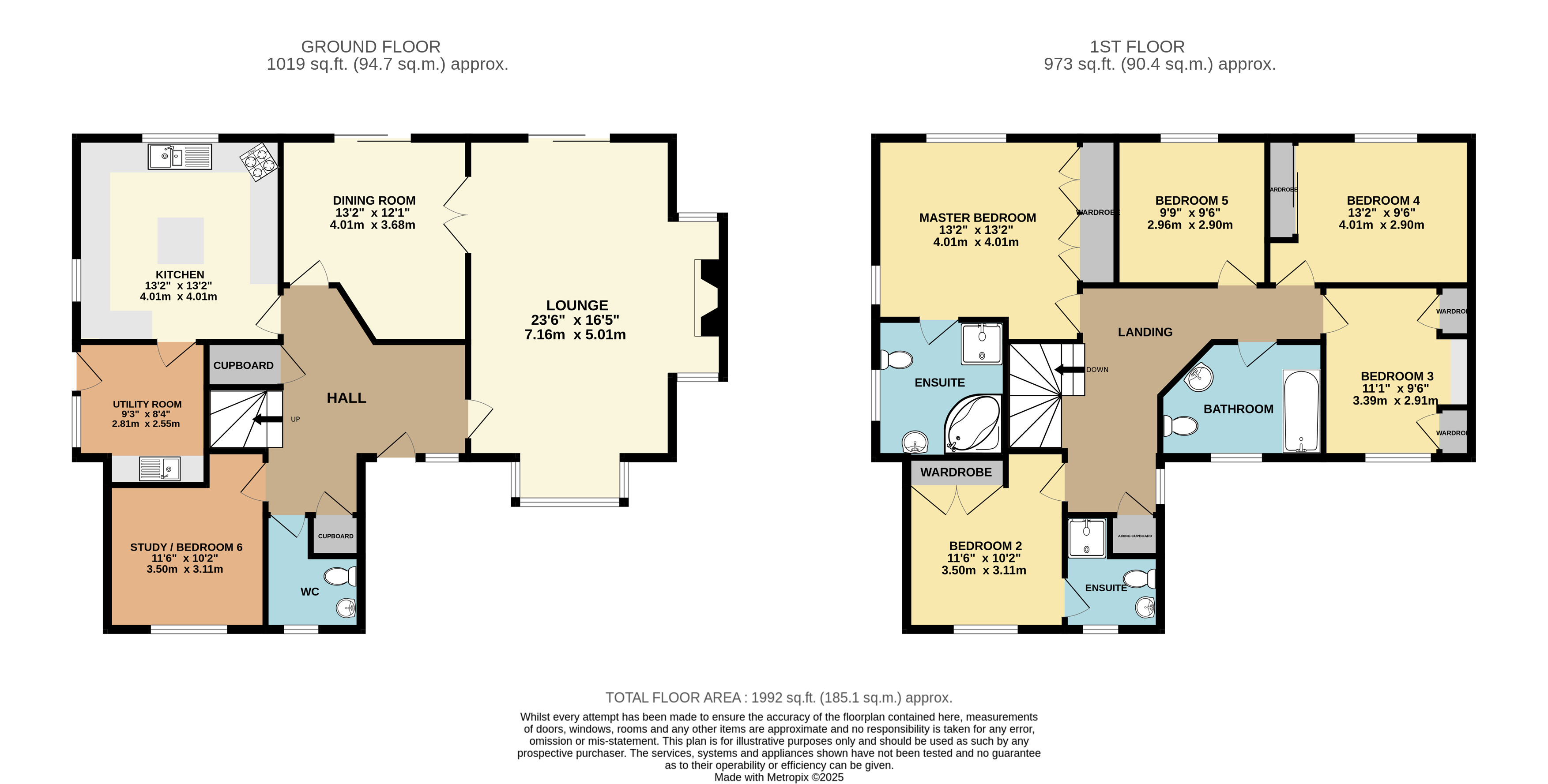 To the first floor the property benefits from five well-proportioned bedrooms, with two enjoying their own private en-suite's with the master en-suite featuring a four piece suite of WC, wash basin, shower cubicle and corner bath.