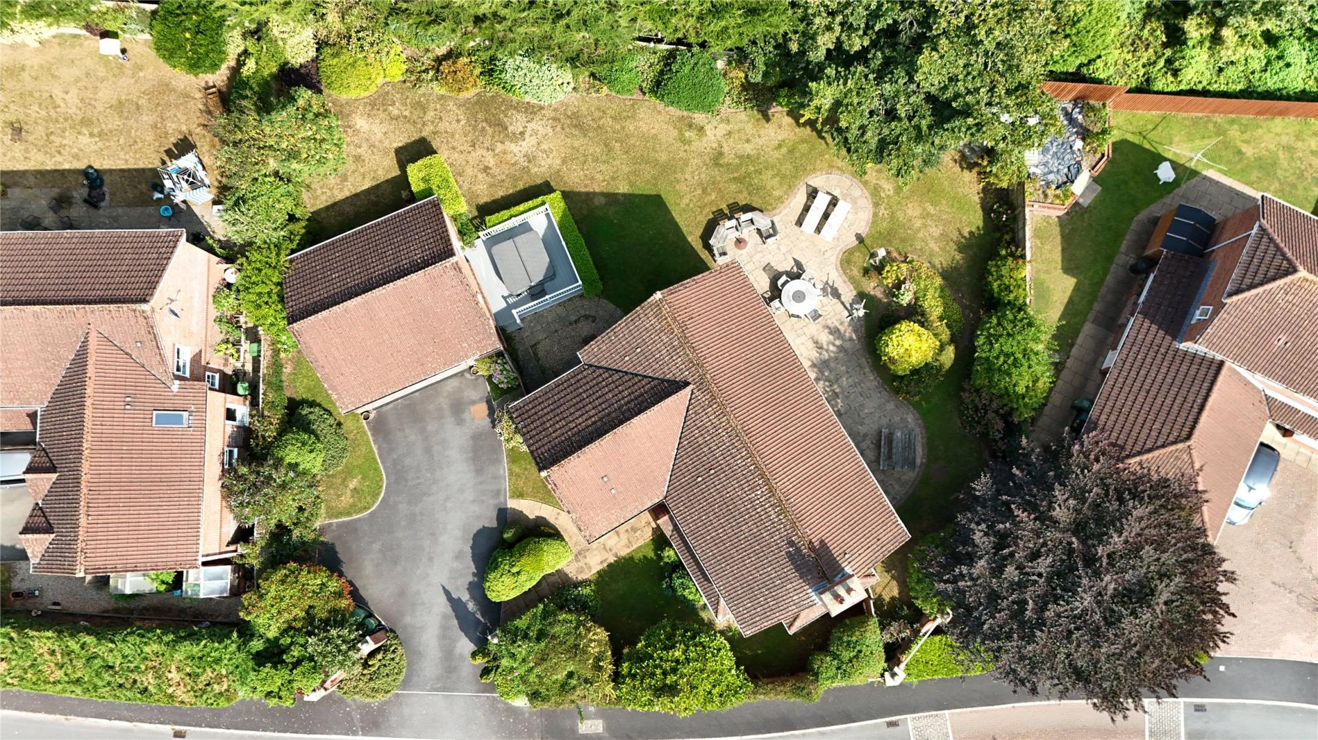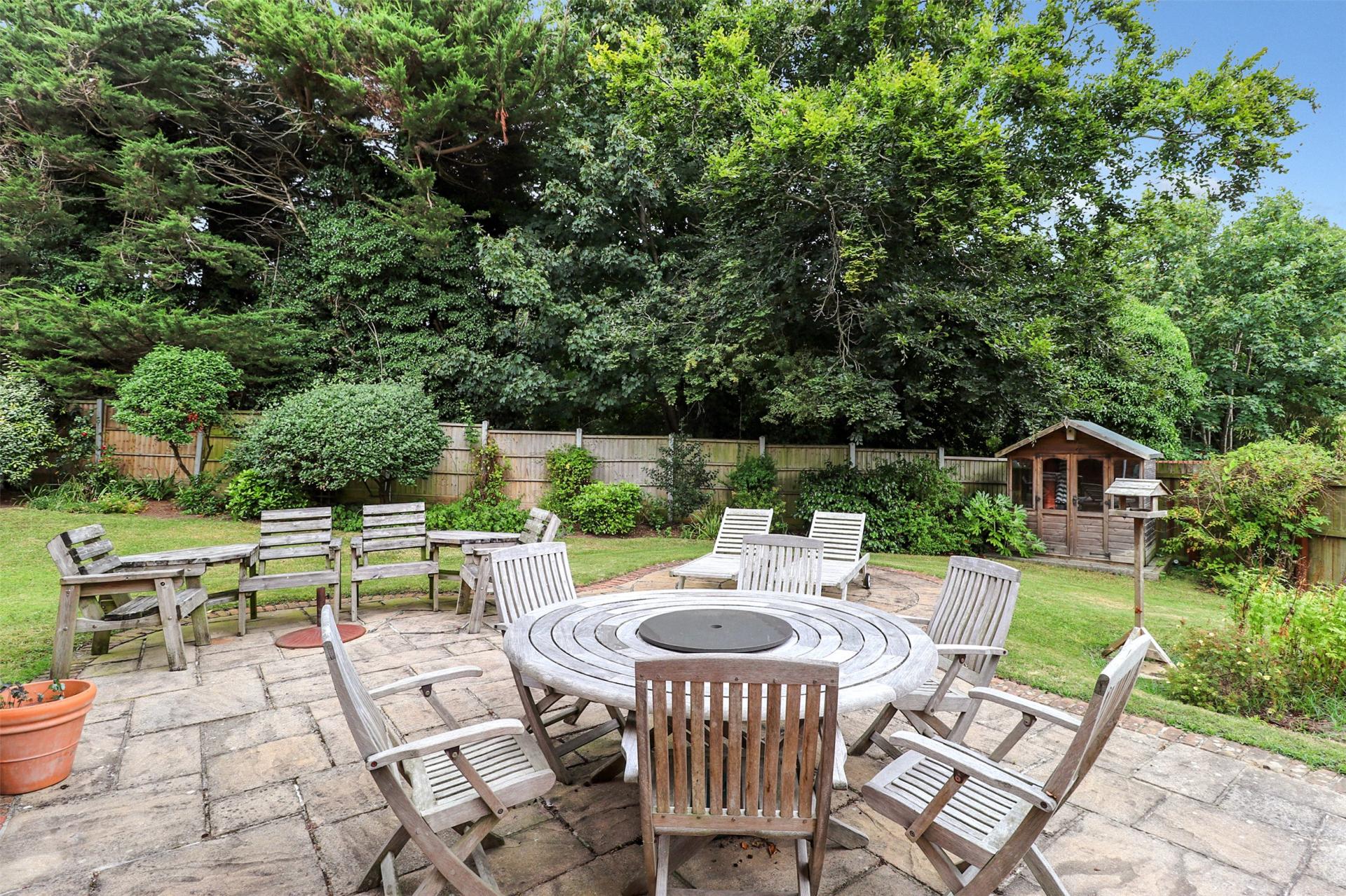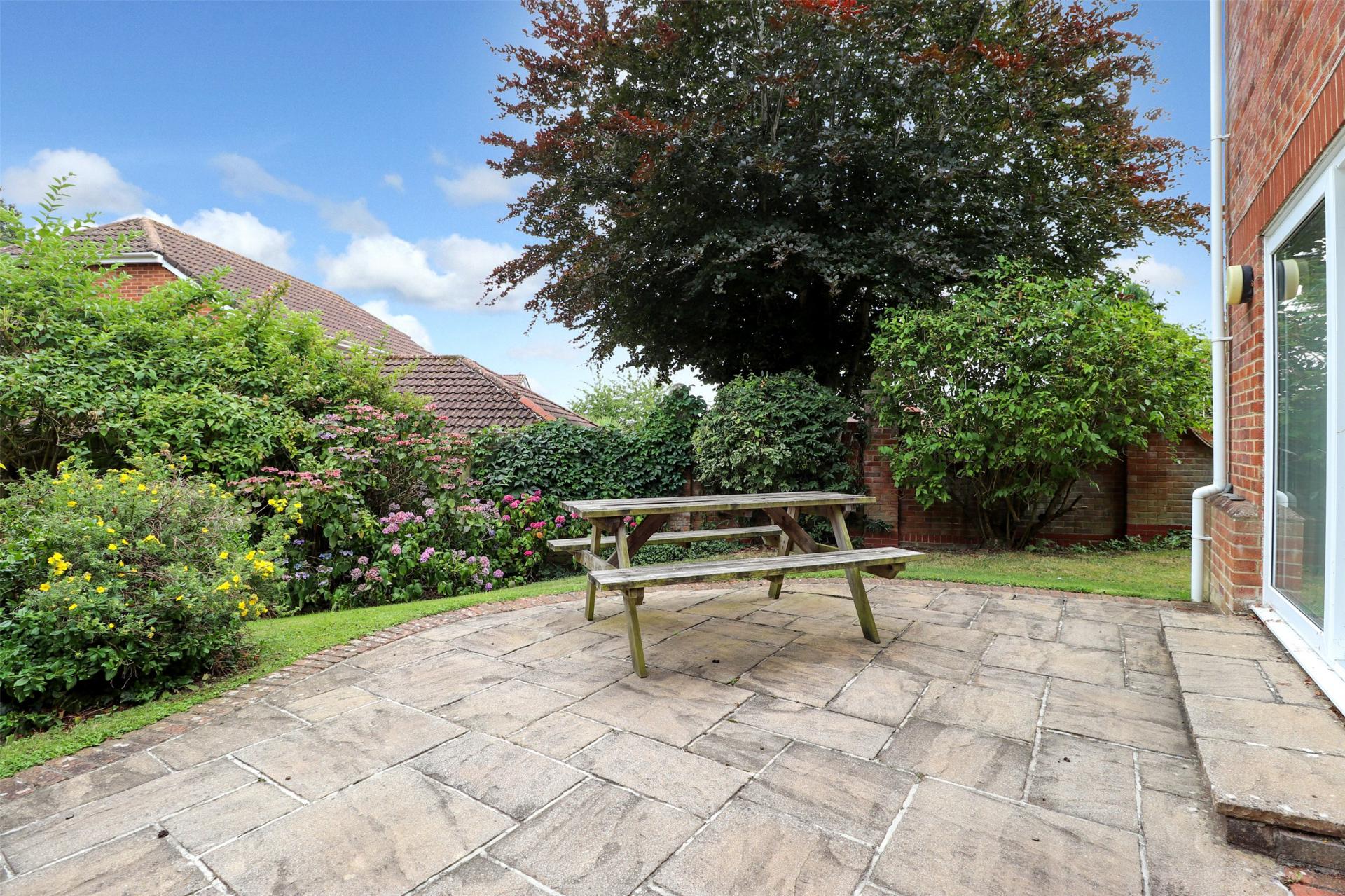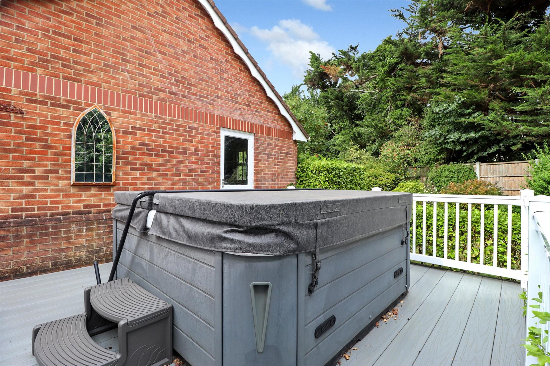 Outside, the home sits proudly on a generous wrap around plot, bordered by mature trees, shrubs, and bushes that provide both privacy and a tranquil setting. A large patio area adjoining the rear of the property is ideal for al fresco dining and summer gatherings, while a further composite decking area adjoins the double garage, creating a perfect sun trap an ideal spot for a hot tub or additional seating area.