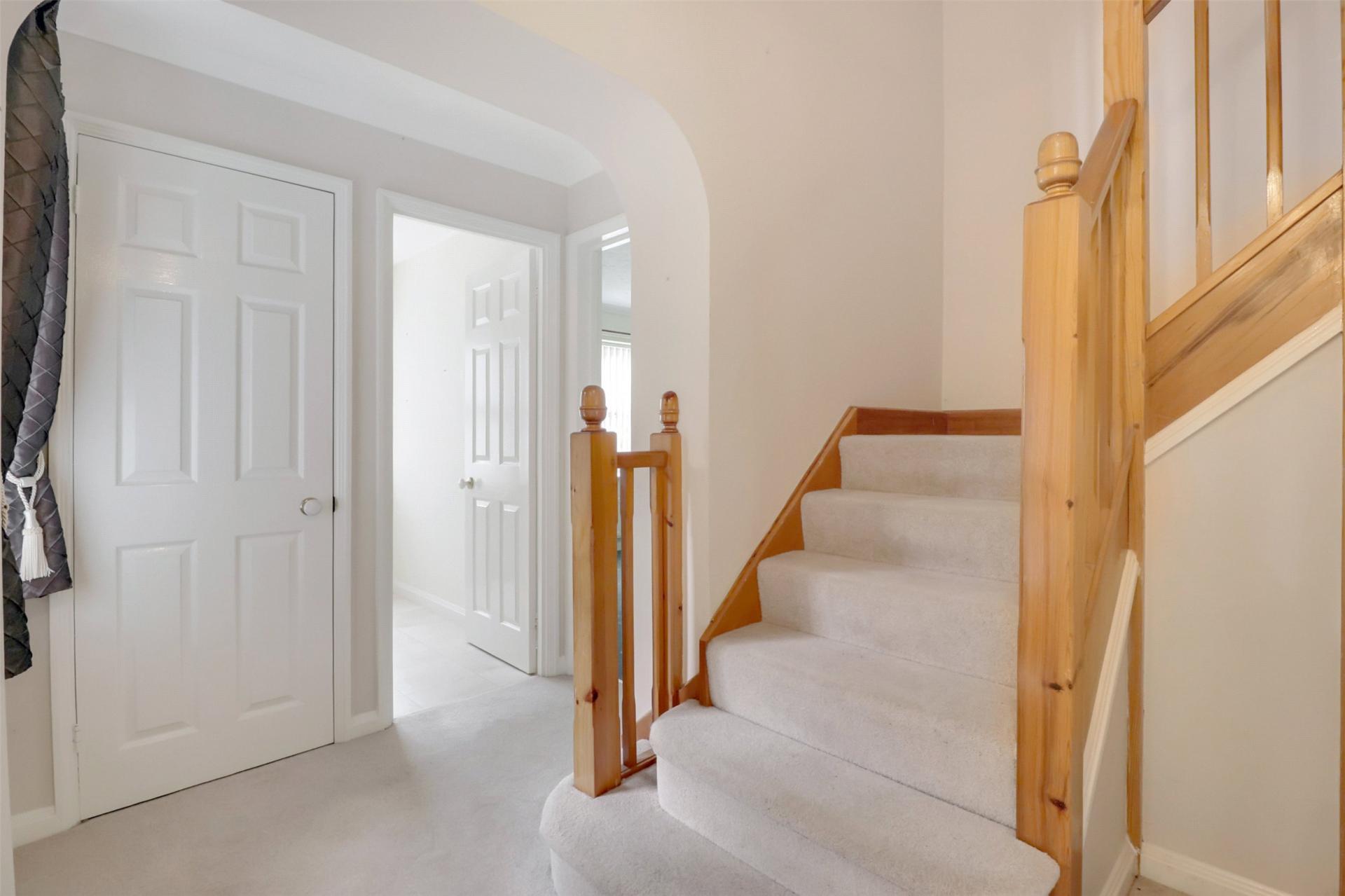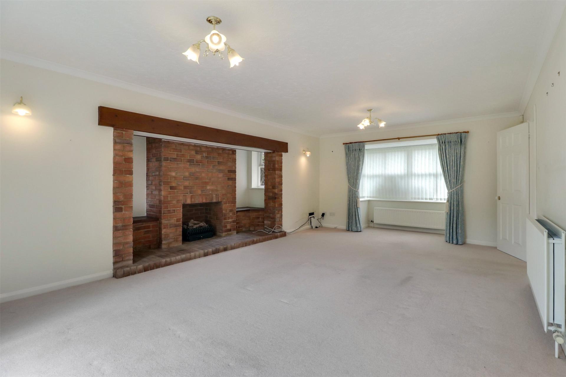 Upon entering, you are welcomed into a generous reception hall that leads to further principal rooms including the impressive dual-aspect lounge, complete with a striking brick-built feature fireplace, creating a warm and inviting focal point. The lounge also features a bay window which overlooks the front along with rear patio doors that open onto the rear garden.