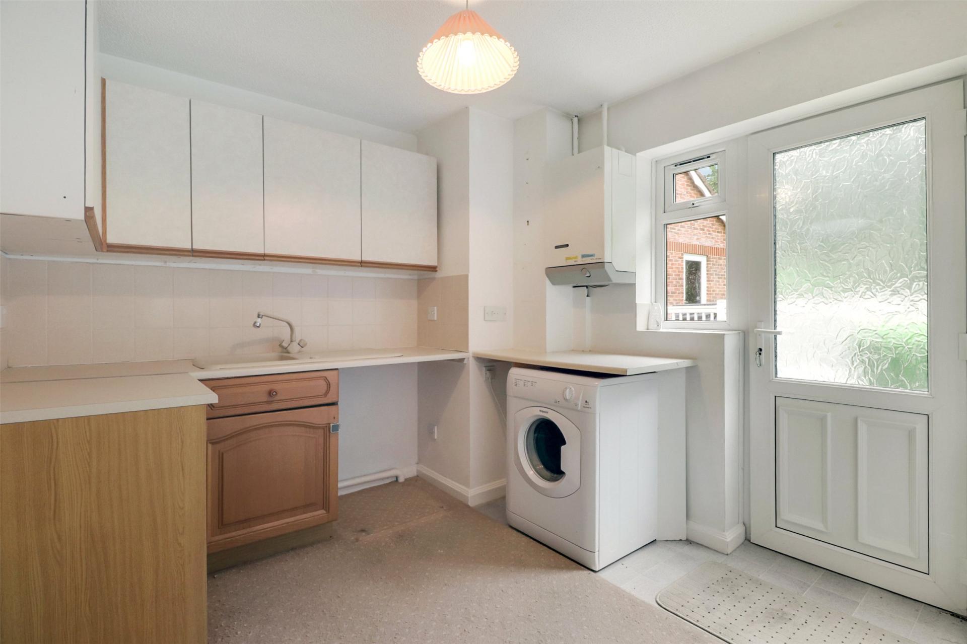 The modern kitchen serves as a stylish and practical social hub, featuring a central breakfast bar island, a range of high-quality units, and integrated appliancesperfect for cooking, dining, and hosting friends and family. From here, a separate utility room offers additional eye- and base-level units, as well as a rear door providing convenient access to the garden.