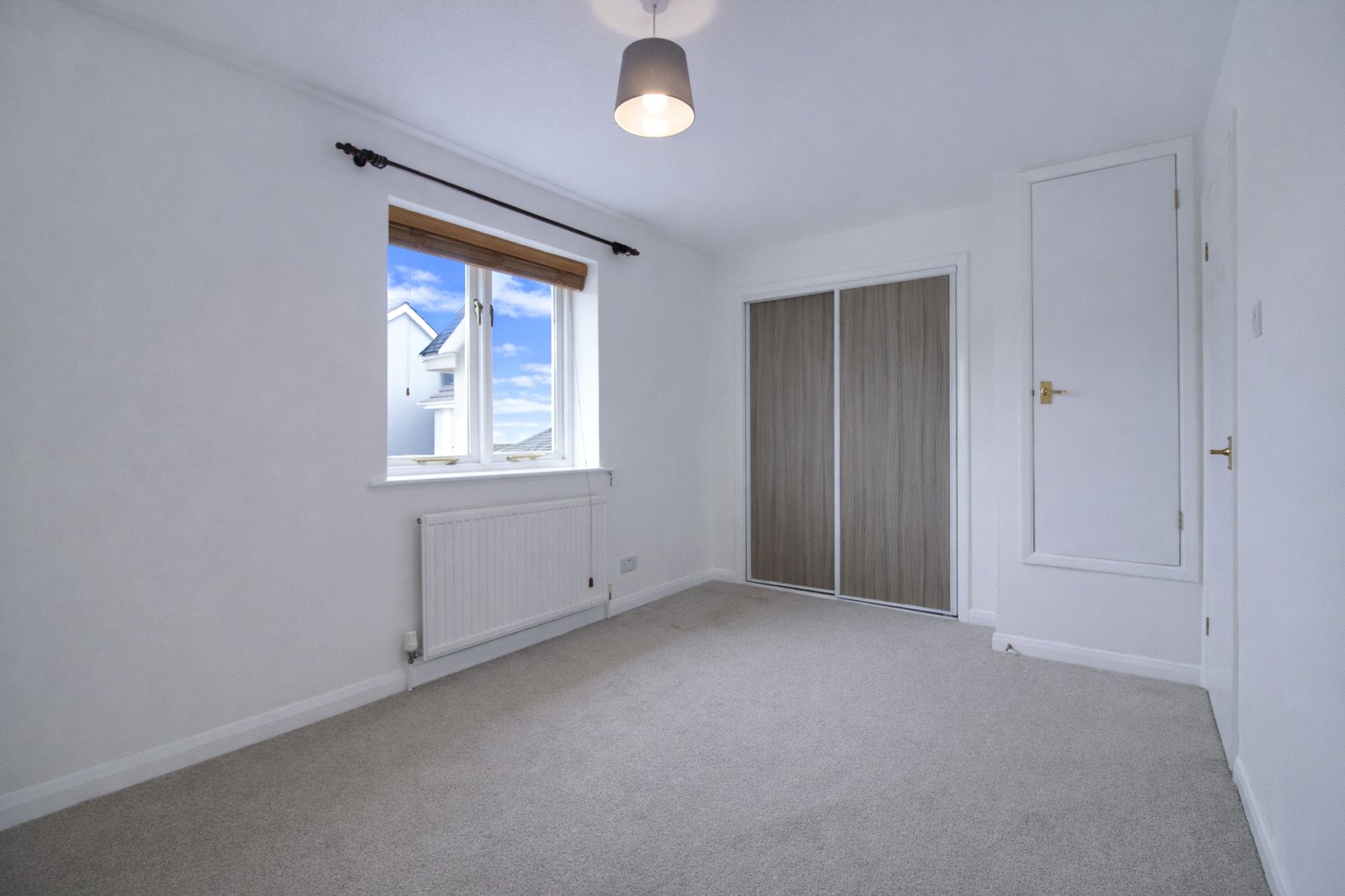 To the first floor are two generously sized double bedrooms. The rear bedroom enjoys delightful river views, while the front bedroom benefits from an integrated sliding-door wardrobe and additional over-stairs storage.