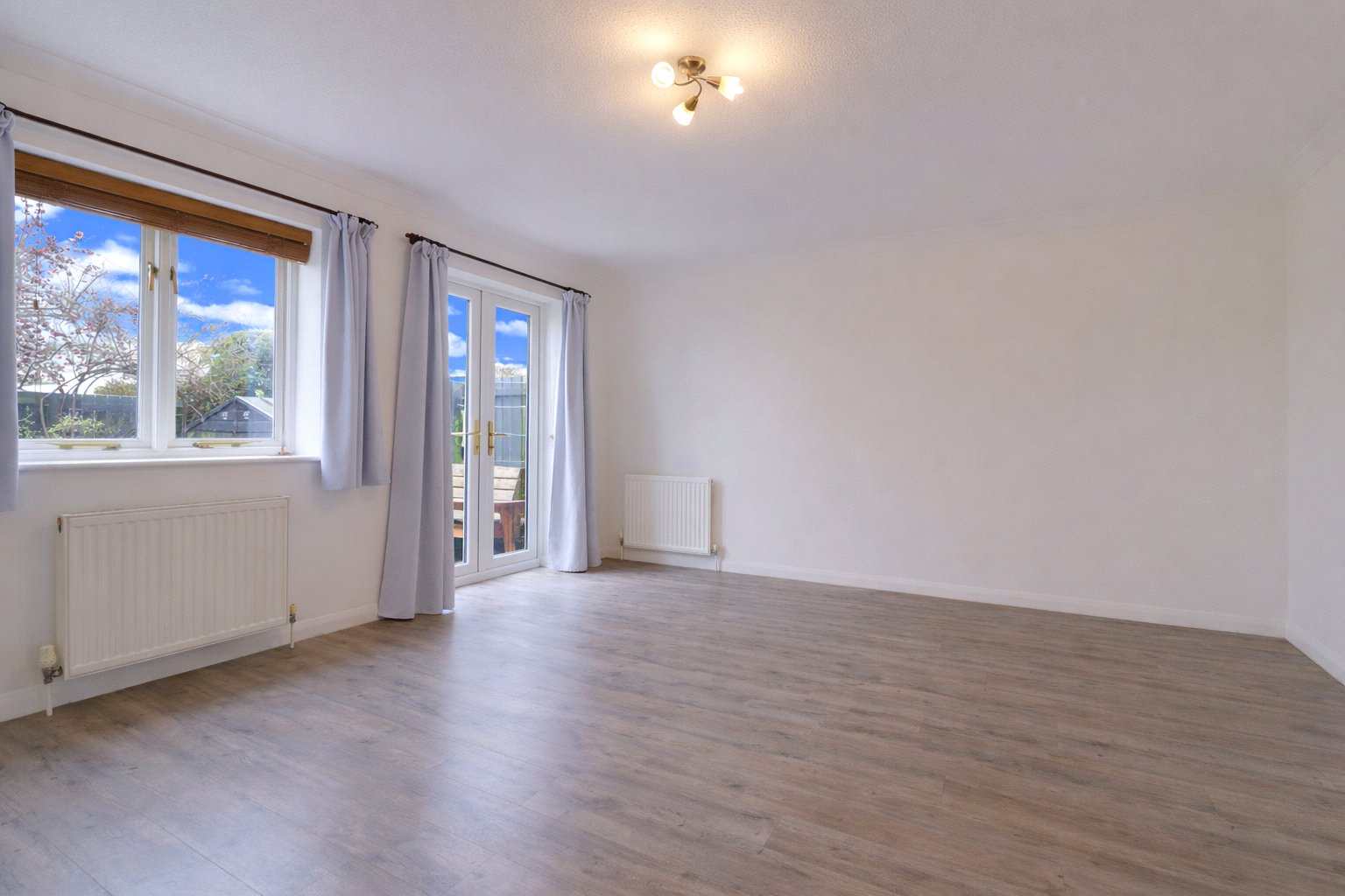 Situated at the rear of the property, the spacious living room offers excellent flexibility for a variety of furniture arrangements and benefits from a useful understairs storage cupboard. Double doors open directly onto the rear garden, providing a wonderful connection between indoor and outdoor living.