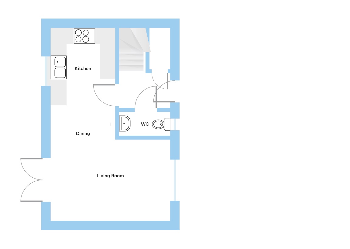 Plot 102 - The Plover - two bedroom detached house with garage. The ground floor accommodation comprises an open-plan kitchen/dining/lounge and WC. French doors from the lounge lead to the garden.