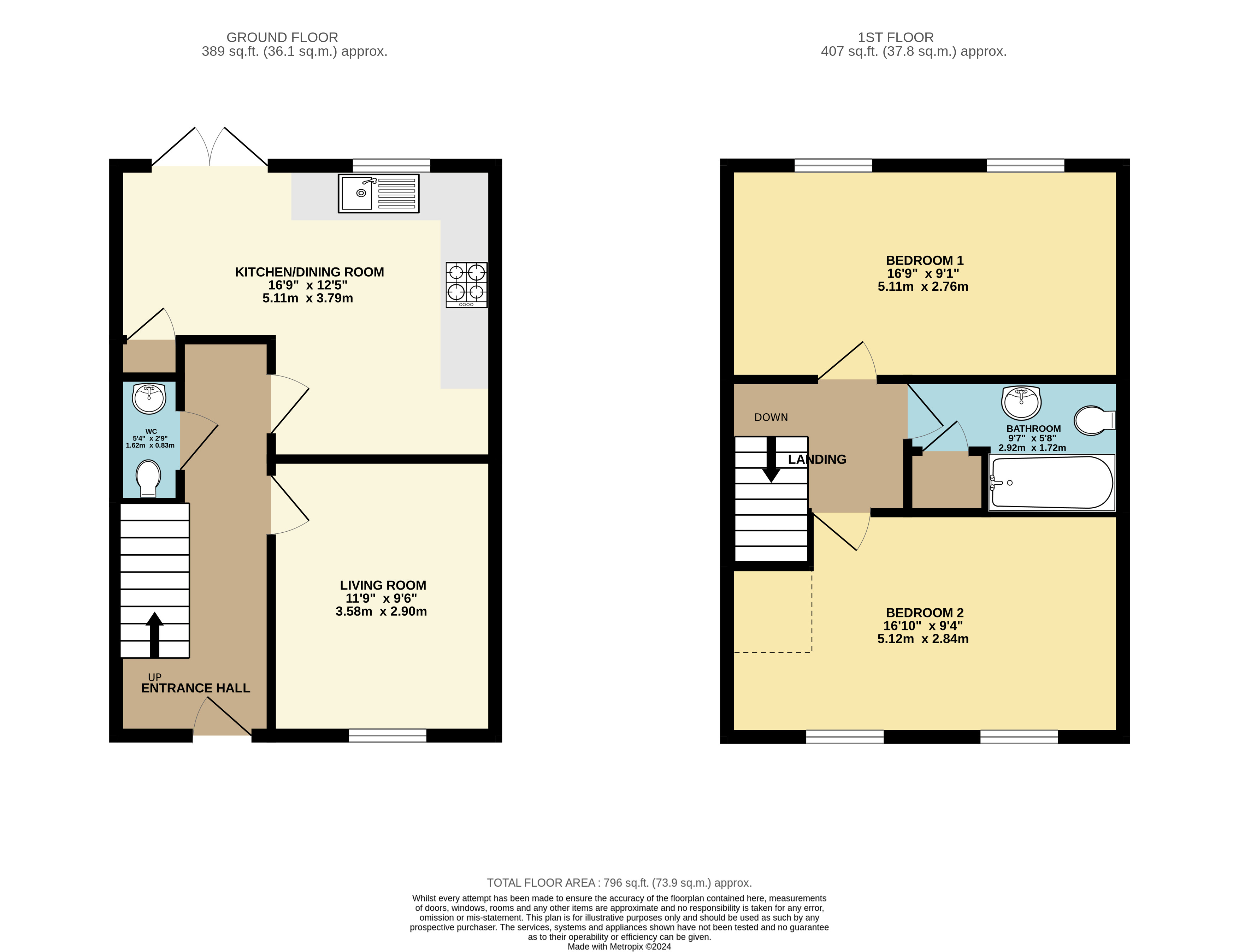 Bedroom 2 16'9" x 9'4" (5.1m x 2.84m).